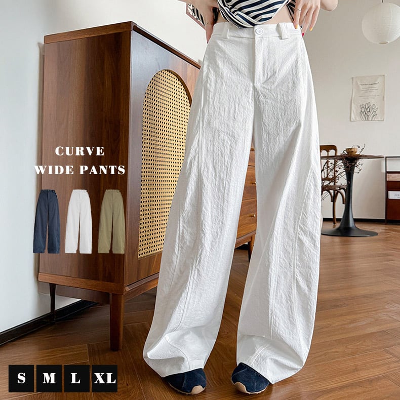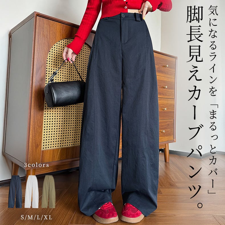 【メール便】「楽に脚長魅せ!」カーブパンツ レディース ボトムス ワイド ロングパンツ/pants670