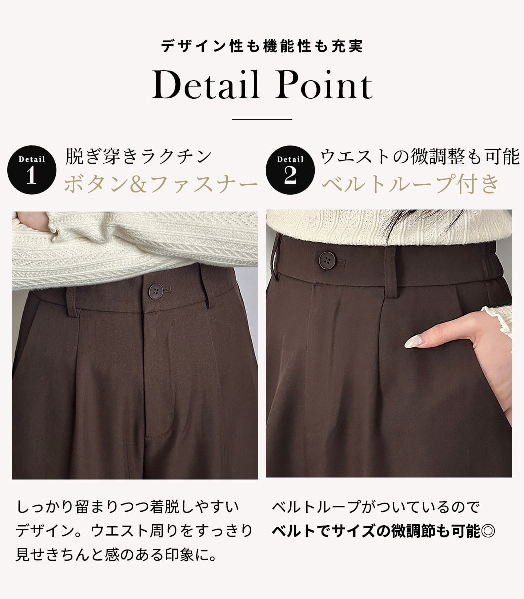 ウエストの微調整も可能 ベルトループ付き