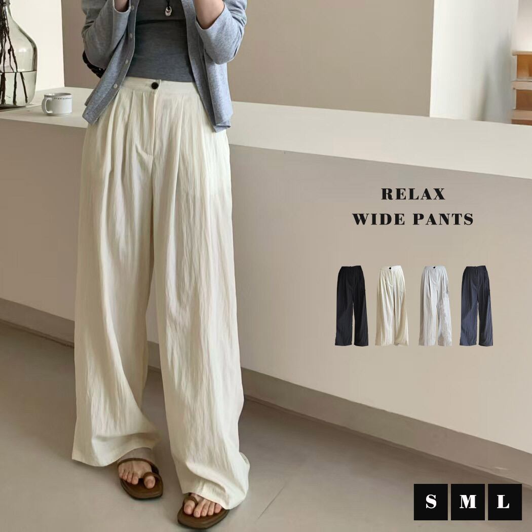 【メール便】「ゆったりと気軽に穿ける」ワイドパンツ レディース ボトムス ロングパンツ ツータック/pants679