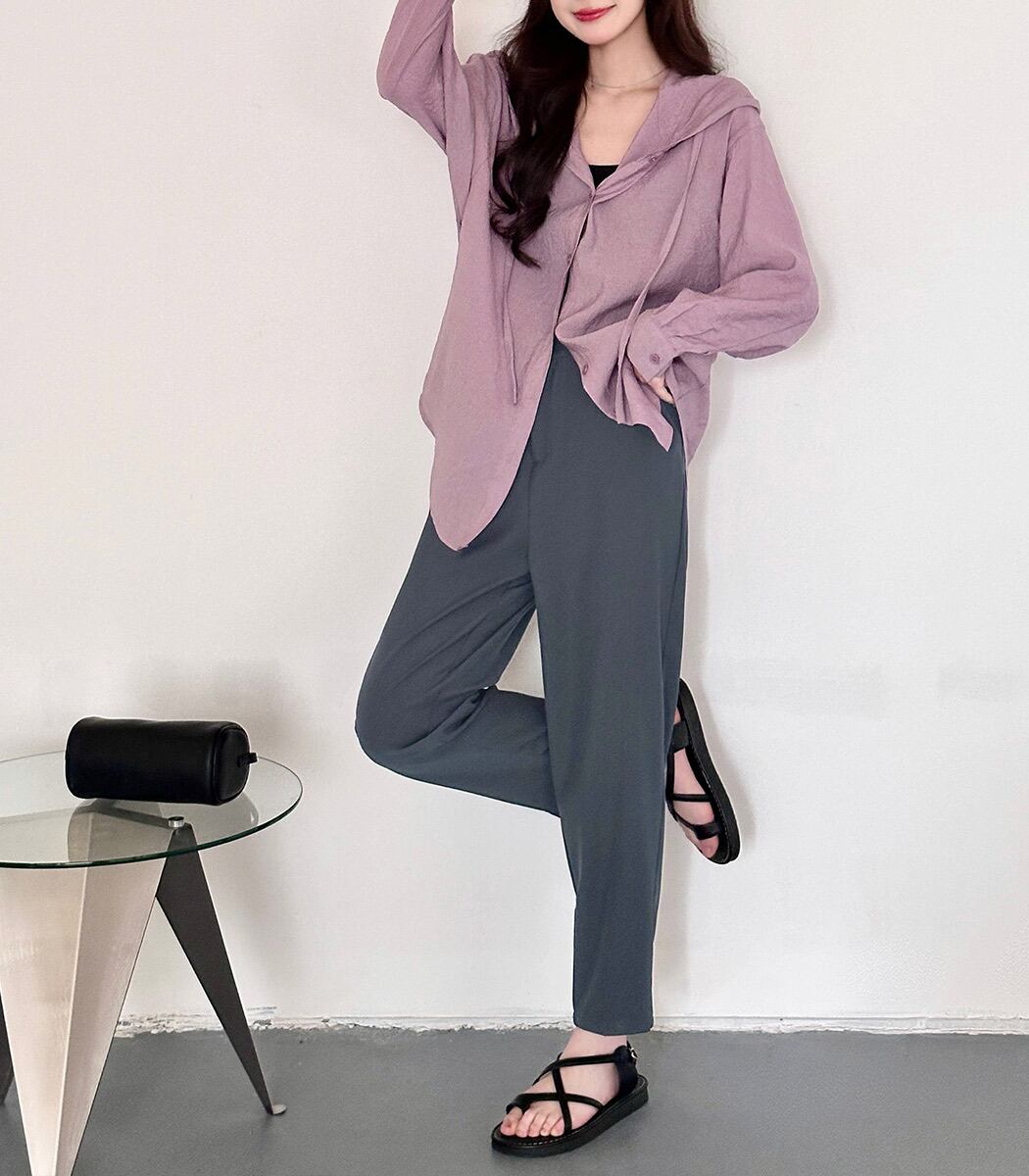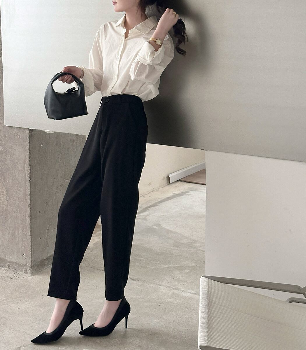 ハイウエストのテーパードシルエットで脚を