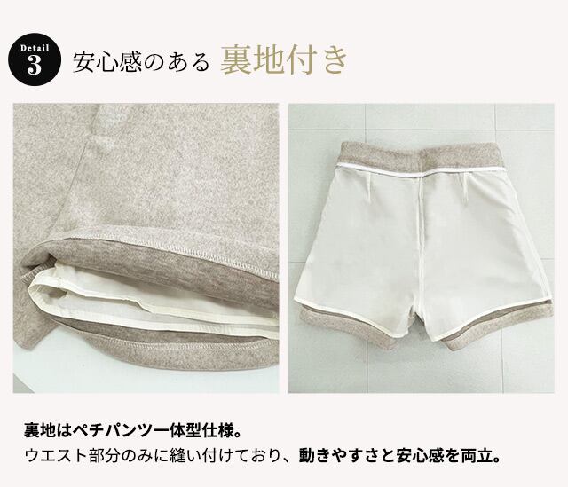 裏地はペチパンツ一体型仕様。