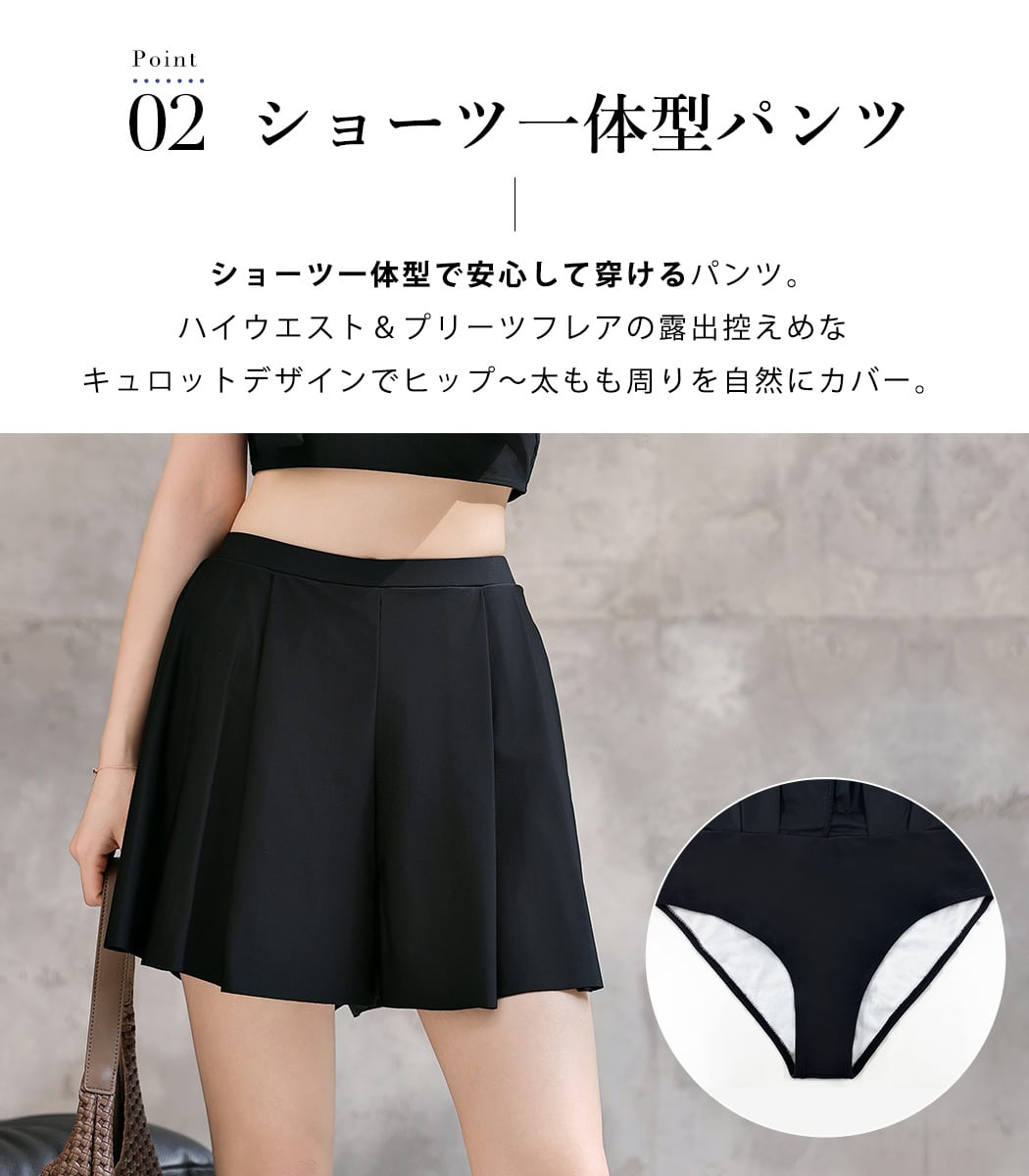 ハイウエスト&プリーツフレアの露出控えめな