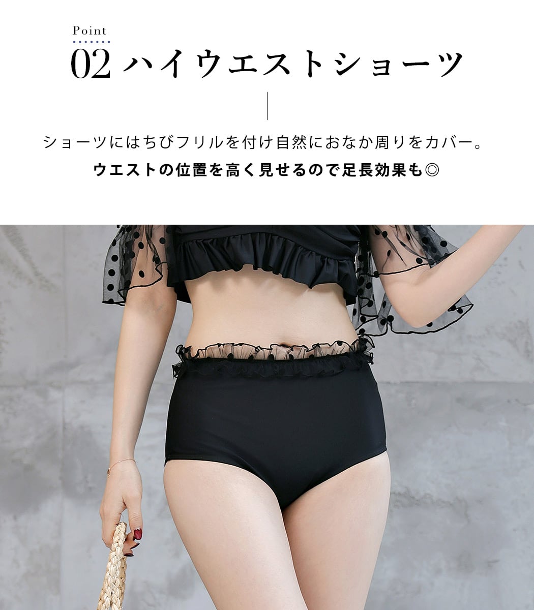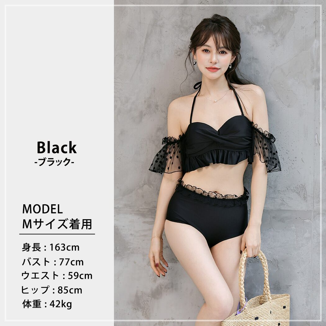 ドット柄チュールが大人ガーリーな2点セット水着