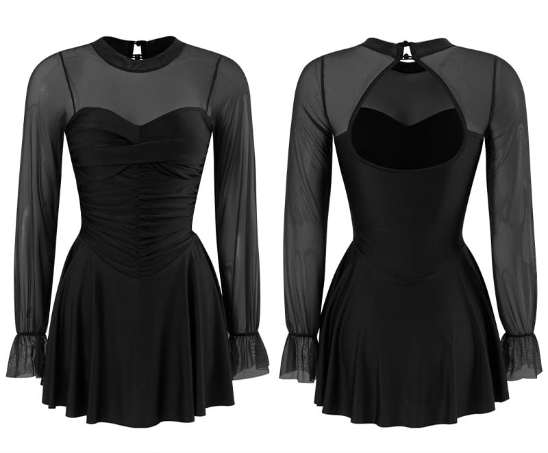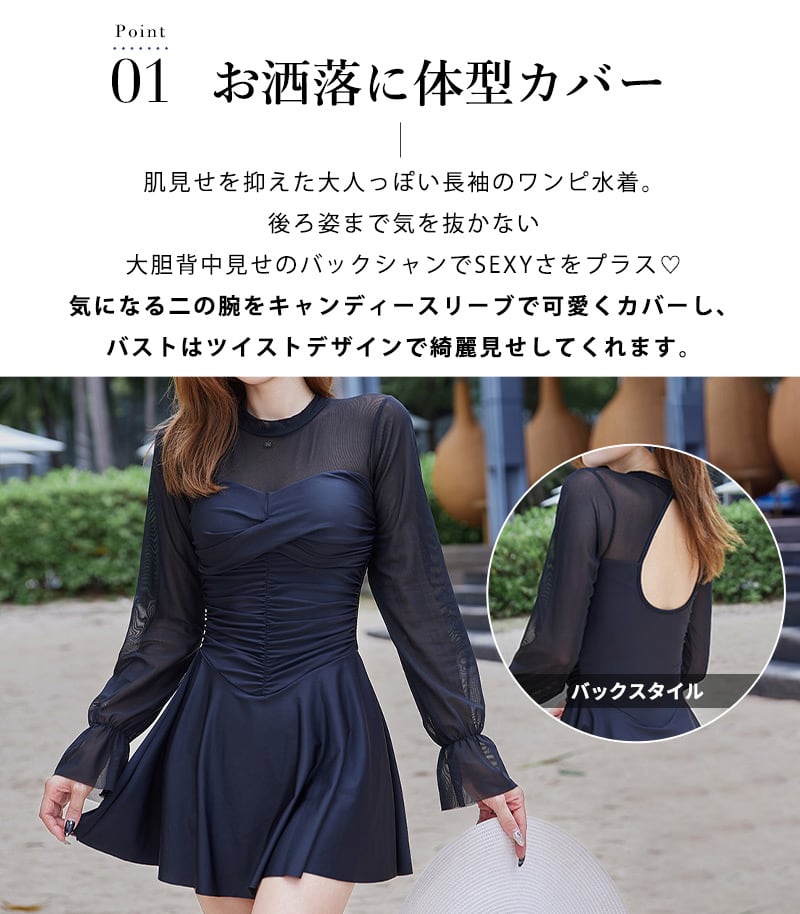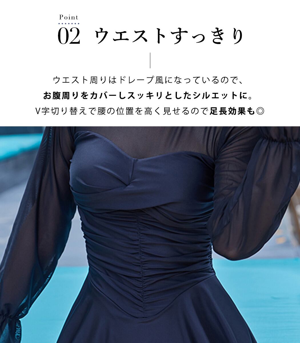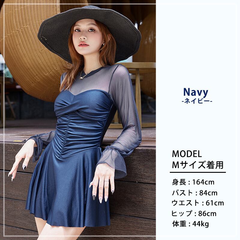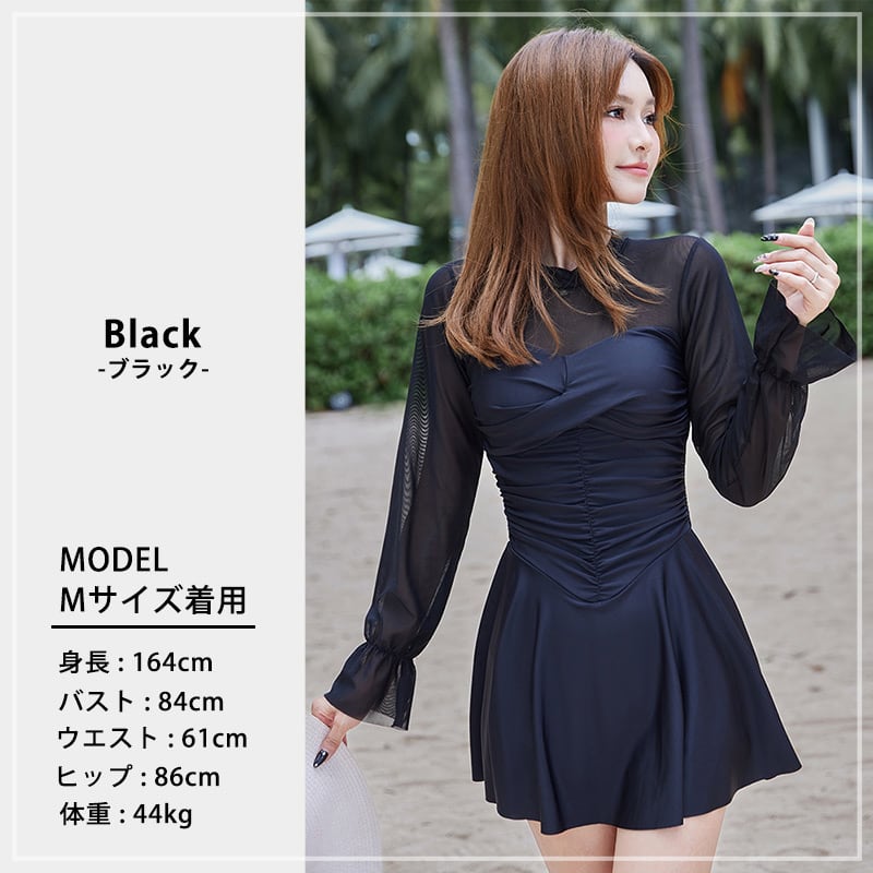 肌見せを抑えた大人っぽい長袖のワンピ水着。