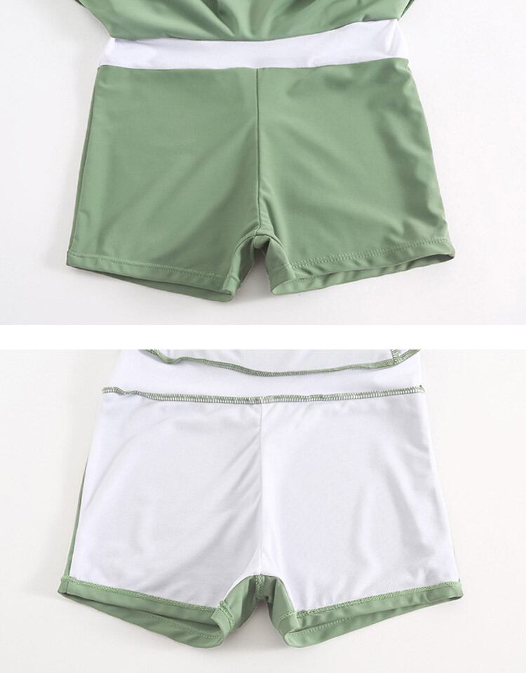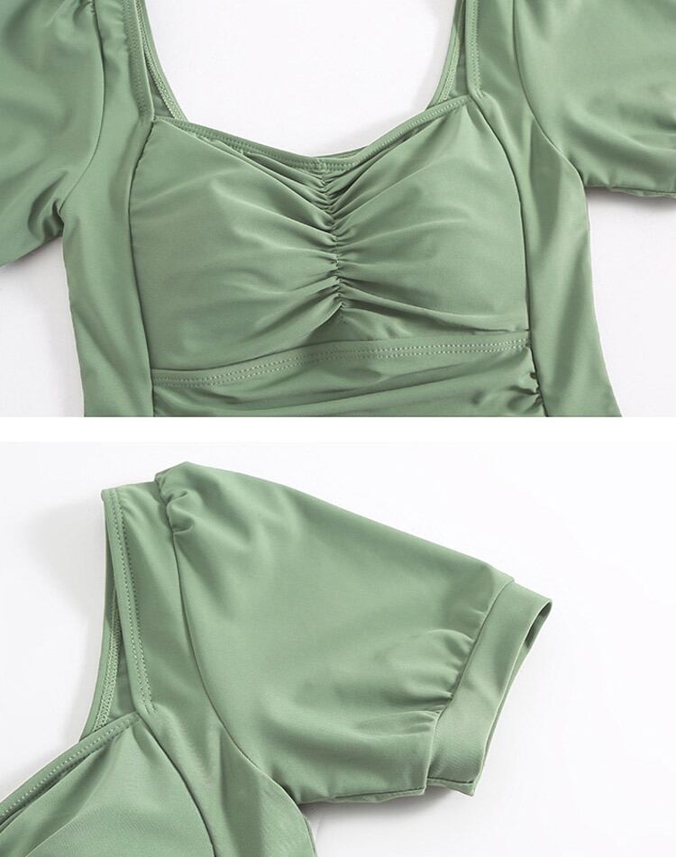 ツルッとした肌触りのベーシックな水着生地を使用。