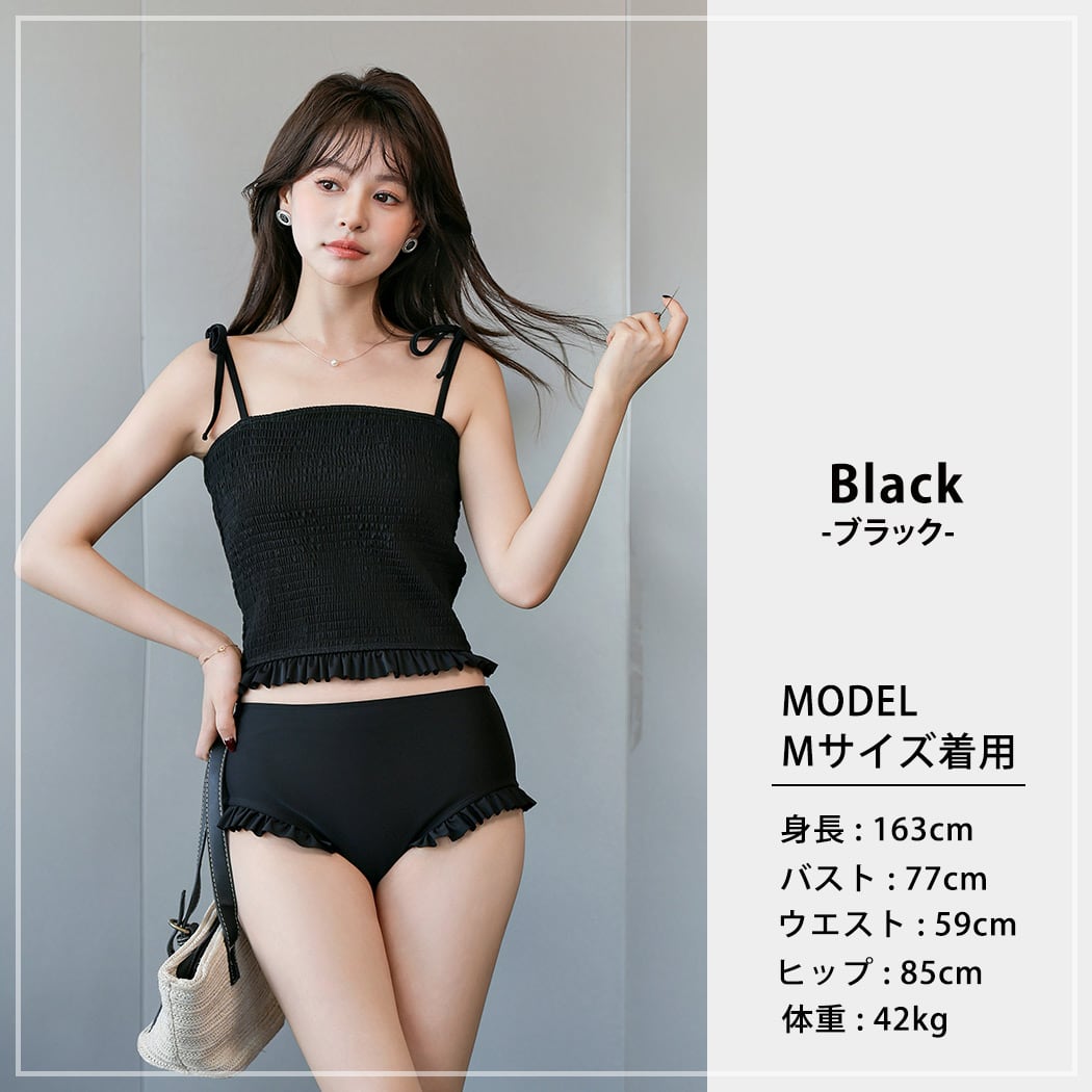 ブラとショーツにお揃いのフリルを施した2点セット水着