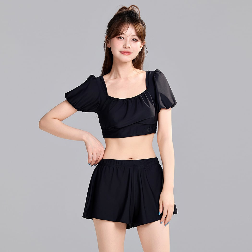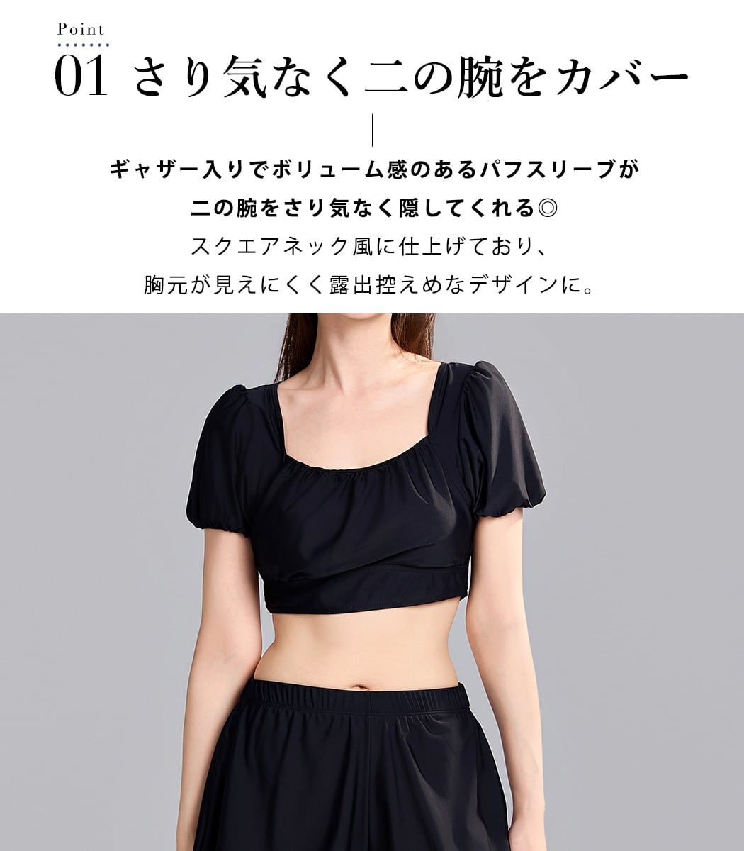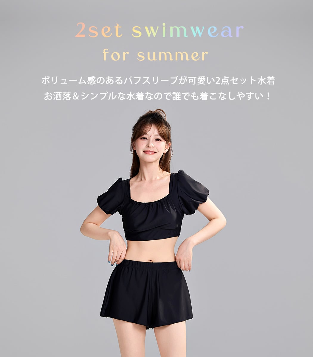 ボリューム感のあるパフスリーブが可愛い2点セット水着