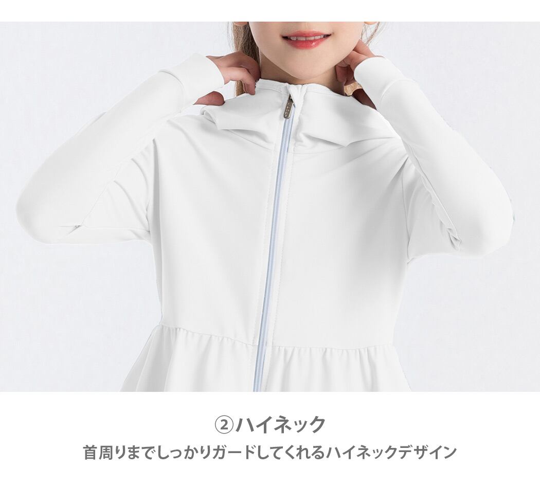 首周りまでしっかりガードしてくれるハイネックデザイン