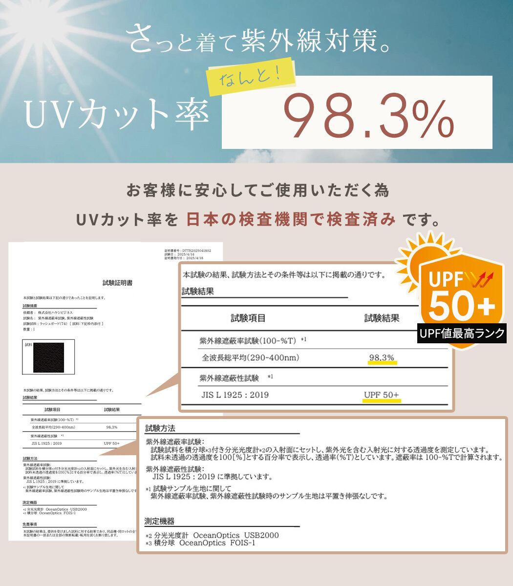 紫外線遮蔽率・UPFを日本の試験機関にて検査済みです。