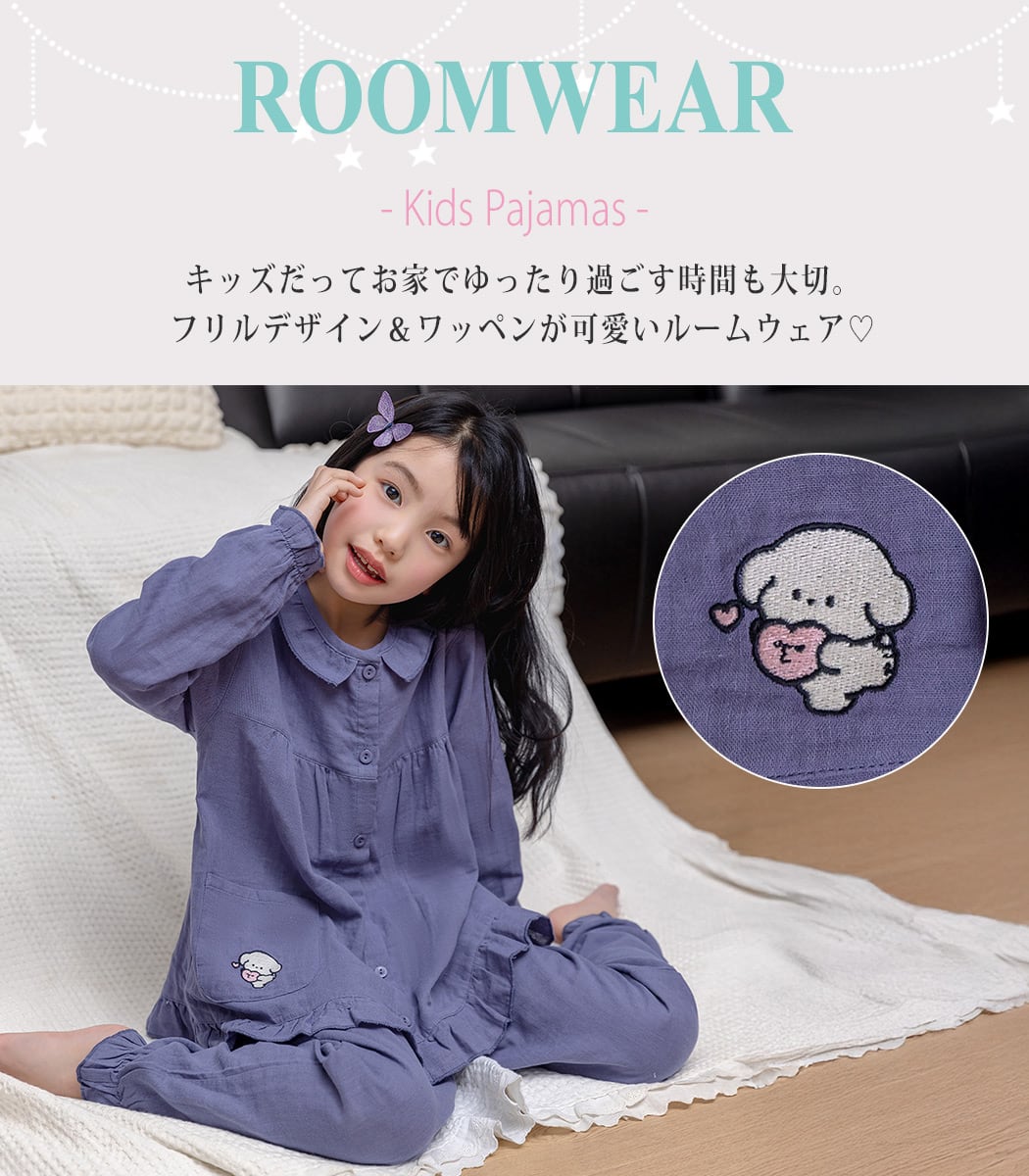 【メール便】キッズ パジャマ 長袖 前開き 女の子/roomwear231