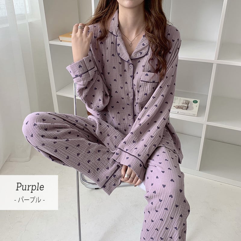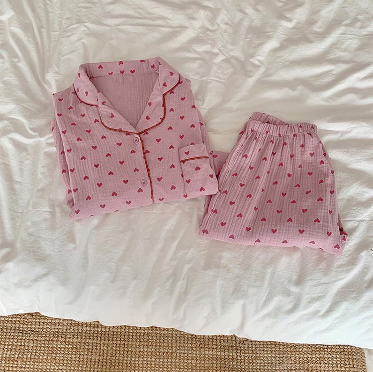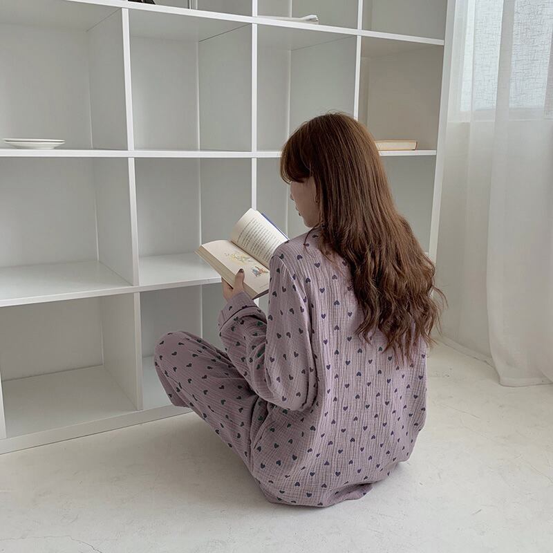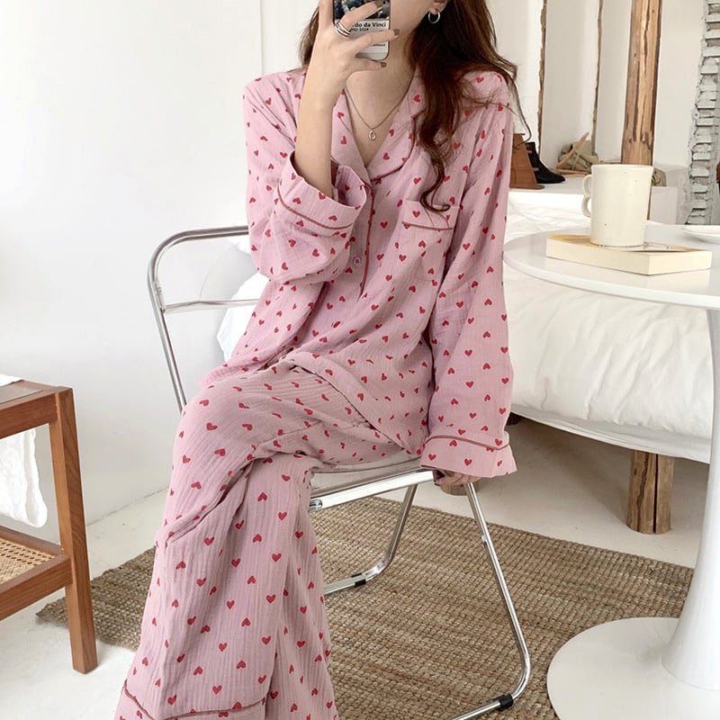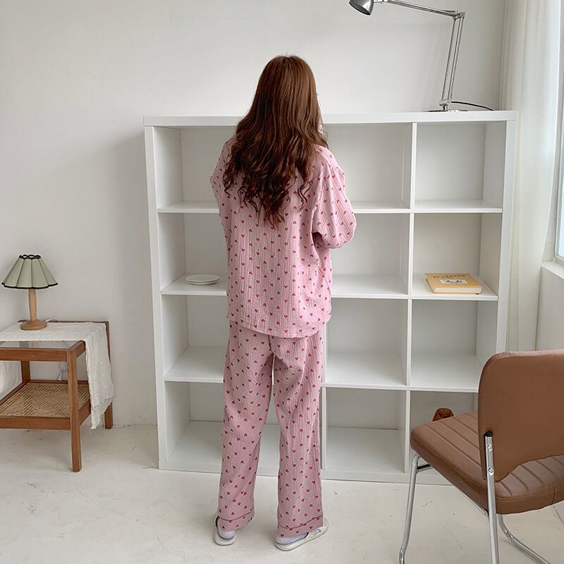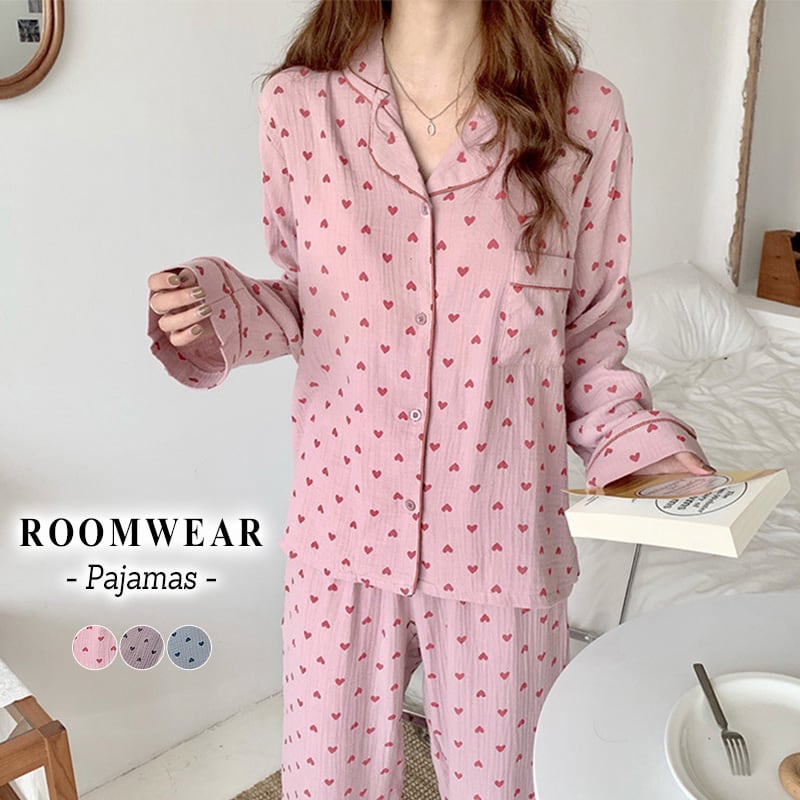 ハート柄が可愛い韓国っぽデザインのパジャマ
