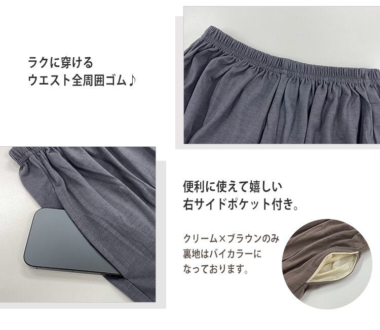ラクに穿けるウエスト全周囲ゴム♪