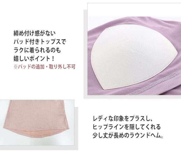 締め付け感がないパッド付きトップスで