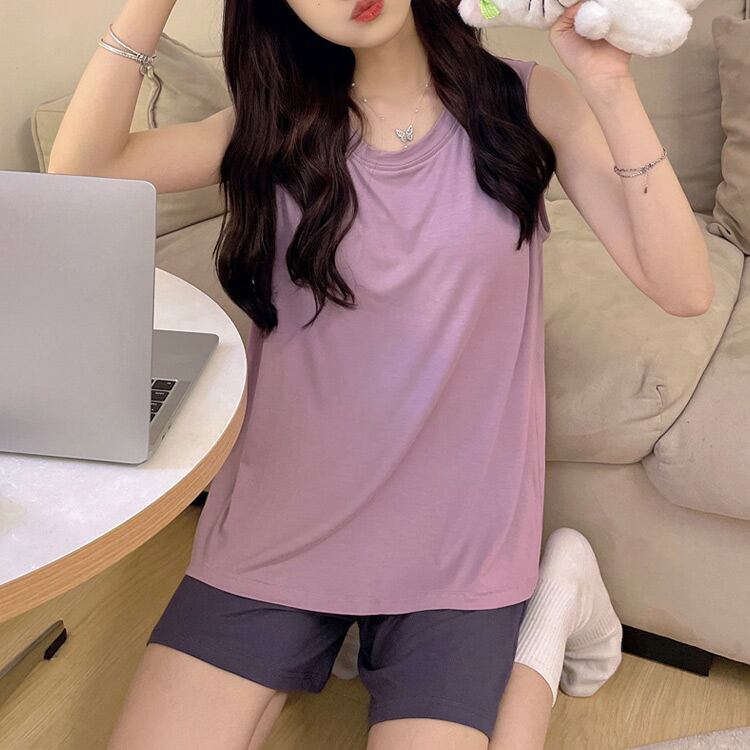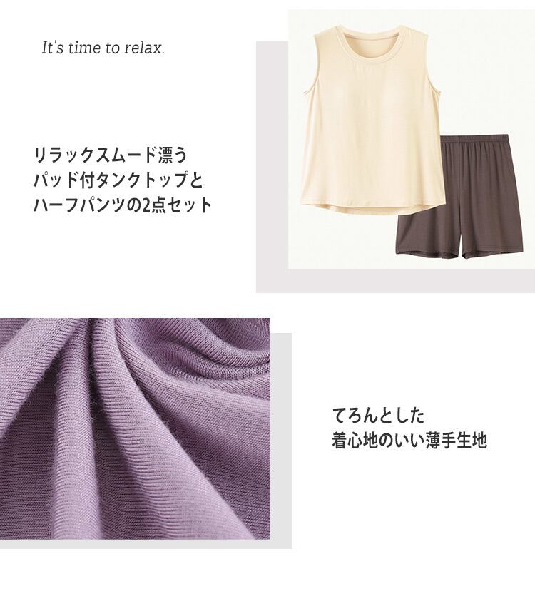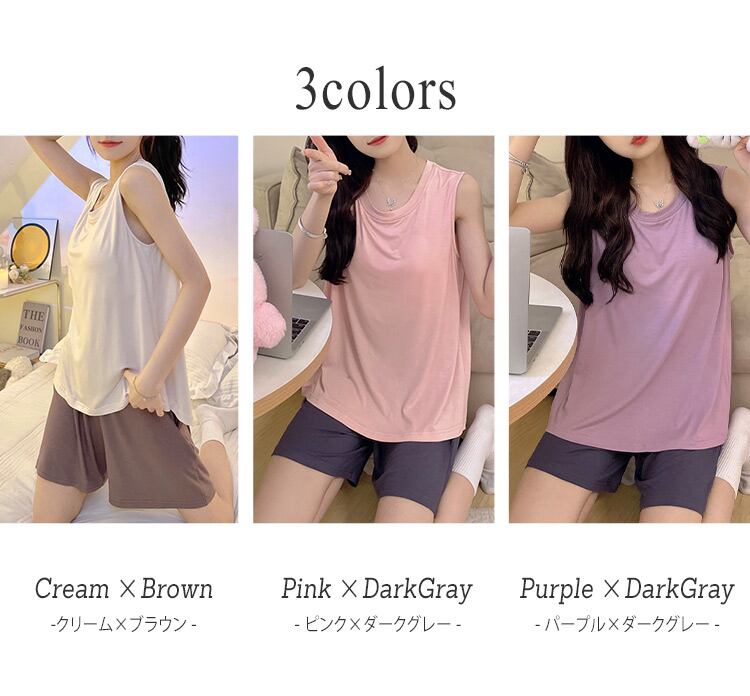 便利なパッド付きタンクトップ&ハーフパンツの2点セット