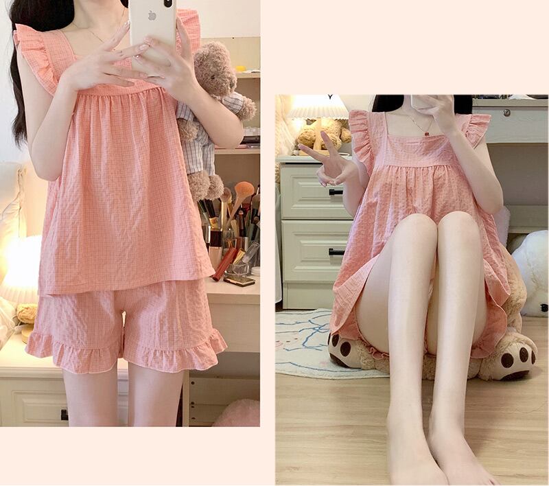 さらっと薄手の生地で、涼し気なルームウェア。