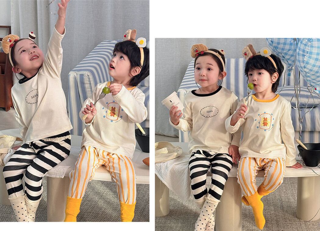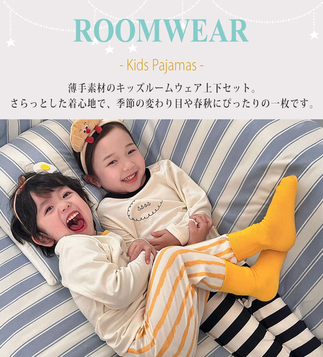 薄手素材のキッズルームウェア上下セット。