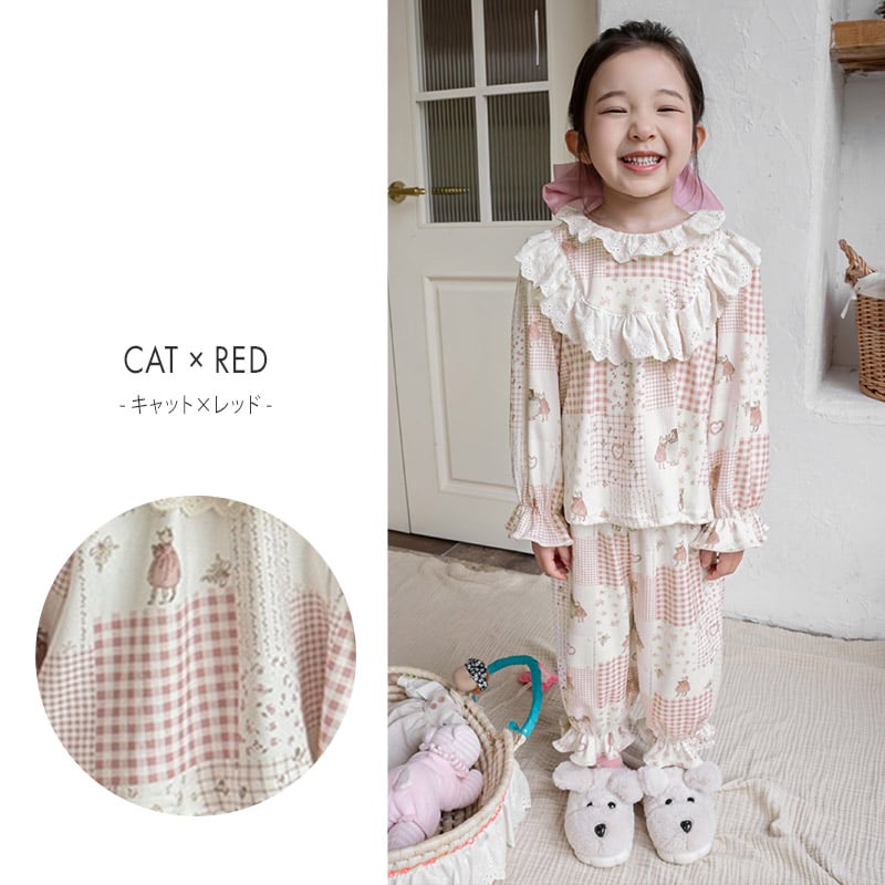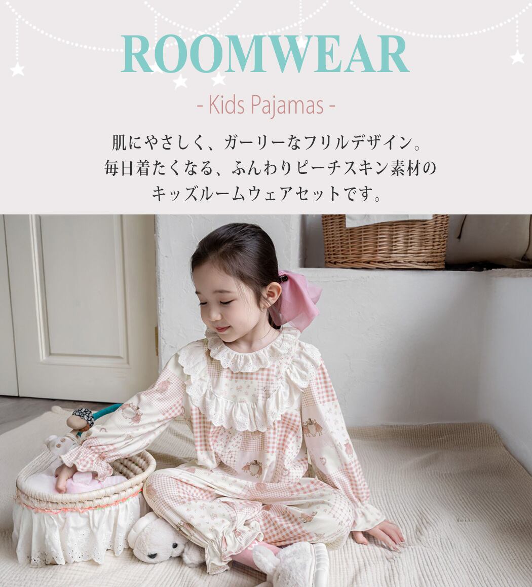 【メール便】キッズ パジャマ フリル 長袖 女の子/roomwear262