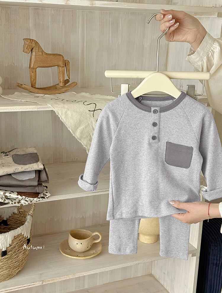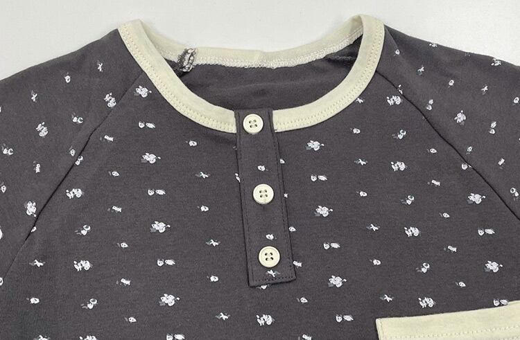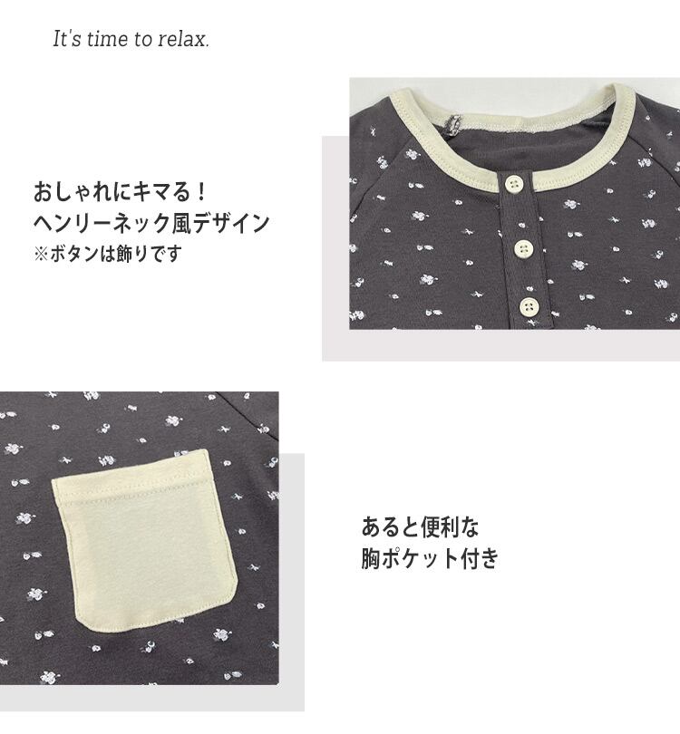 バイカラーのヘンリーネックが可愛いルームウェア