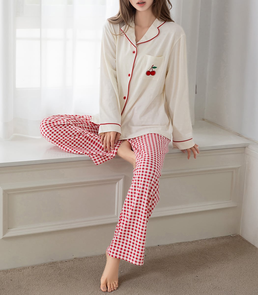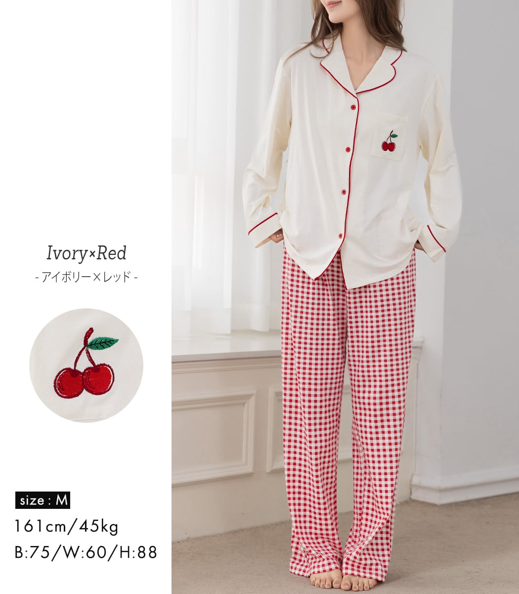 ポップなチェリーの刺繍が可愛いルームウェア。