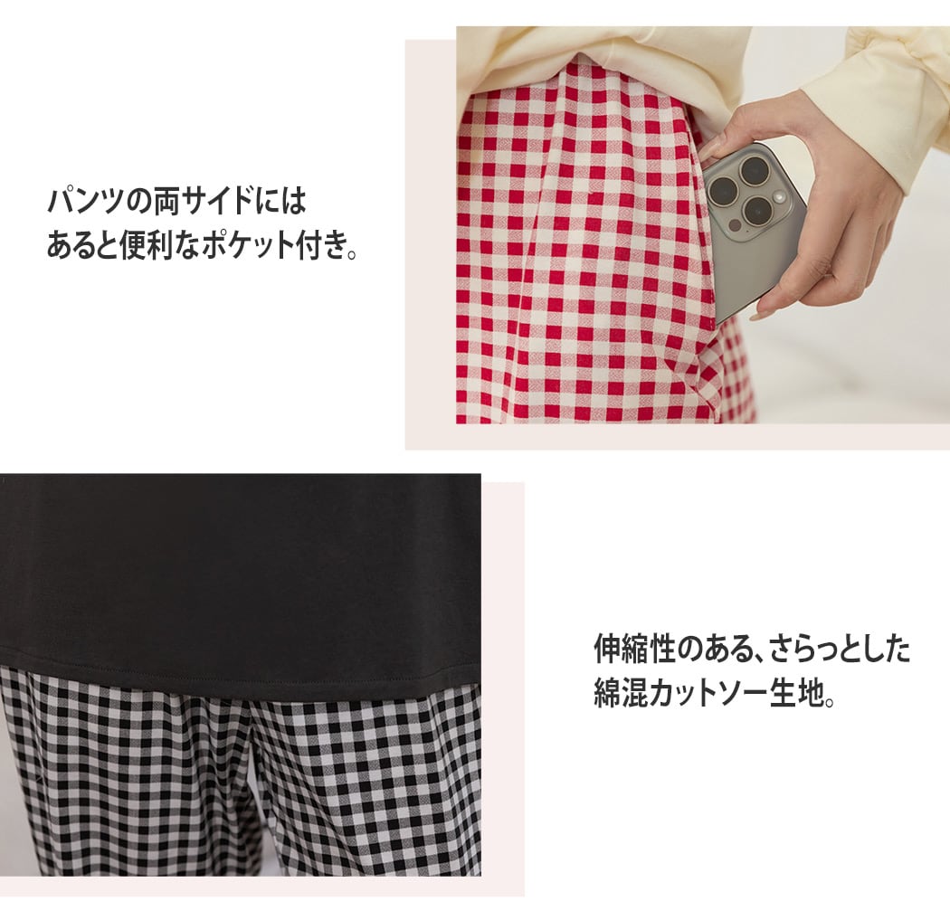 ギンガムチェックとのミックスマッチなのもお洒落!