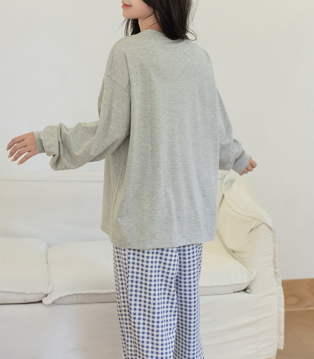 ロンTタイプのゆったりシルエットで、リラックスタイムにおすすめ。