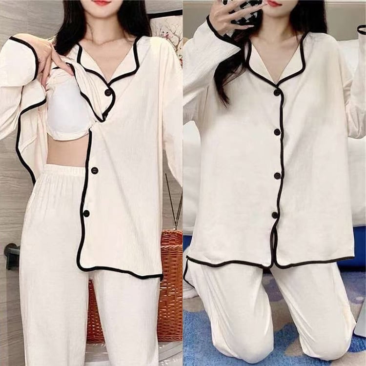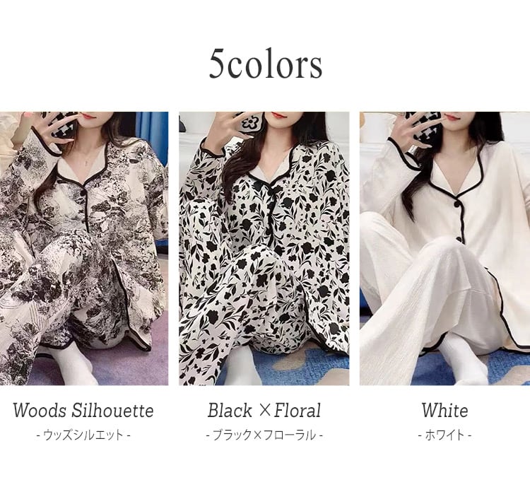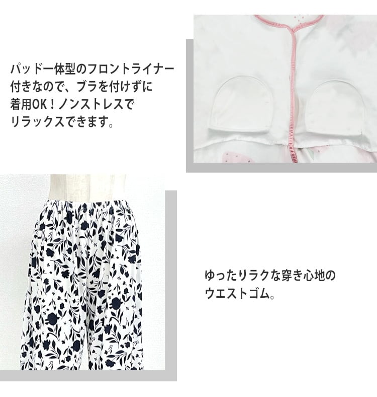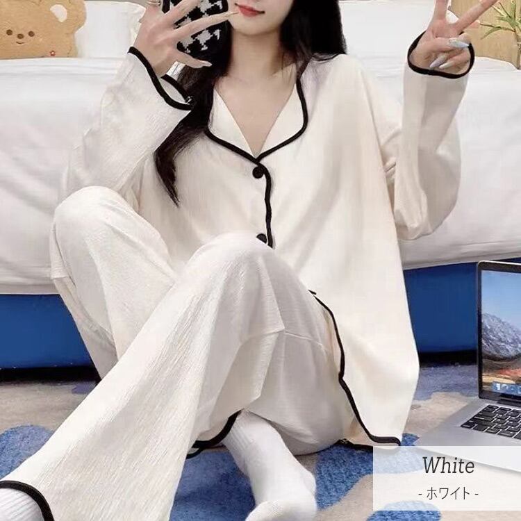 緩やかなメロウ風のパイピングが可愛いルームウェア。