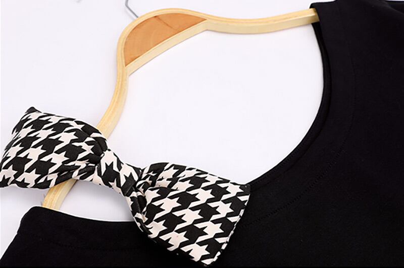 肩紐部分には千鳥格子柄のリボンをあしらい、