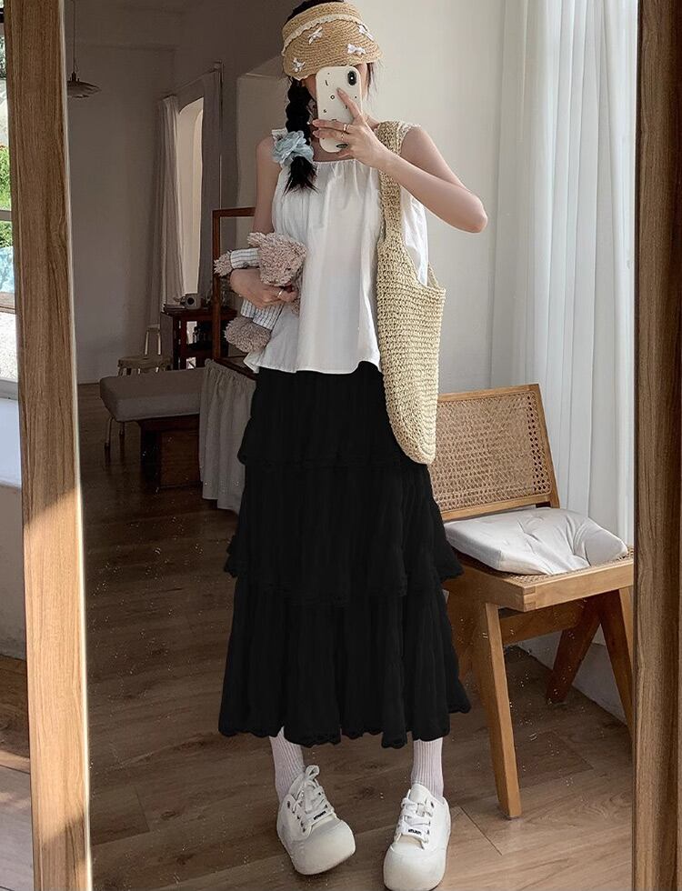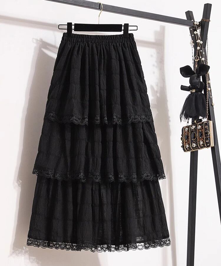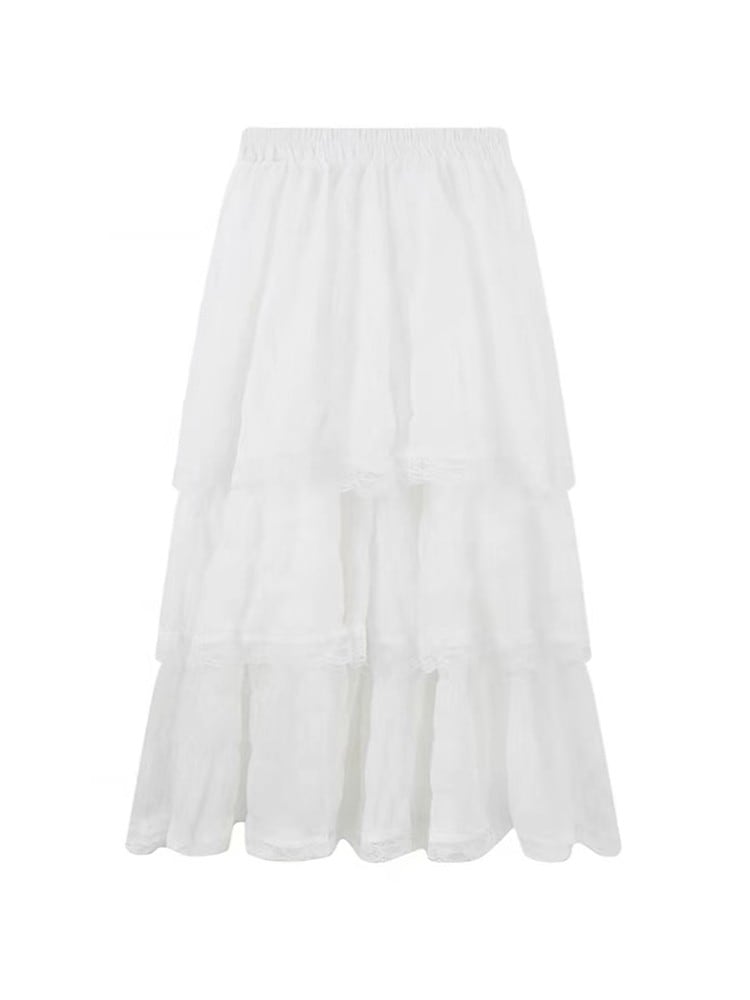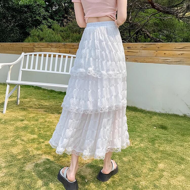 【メール便】「一段ごとに揺れるフリル」ティアード ロング スカート レース フレア/skirt057