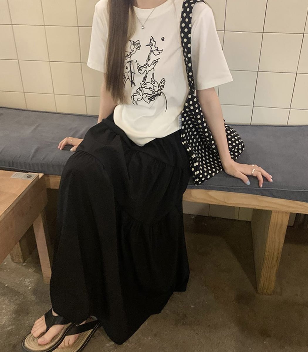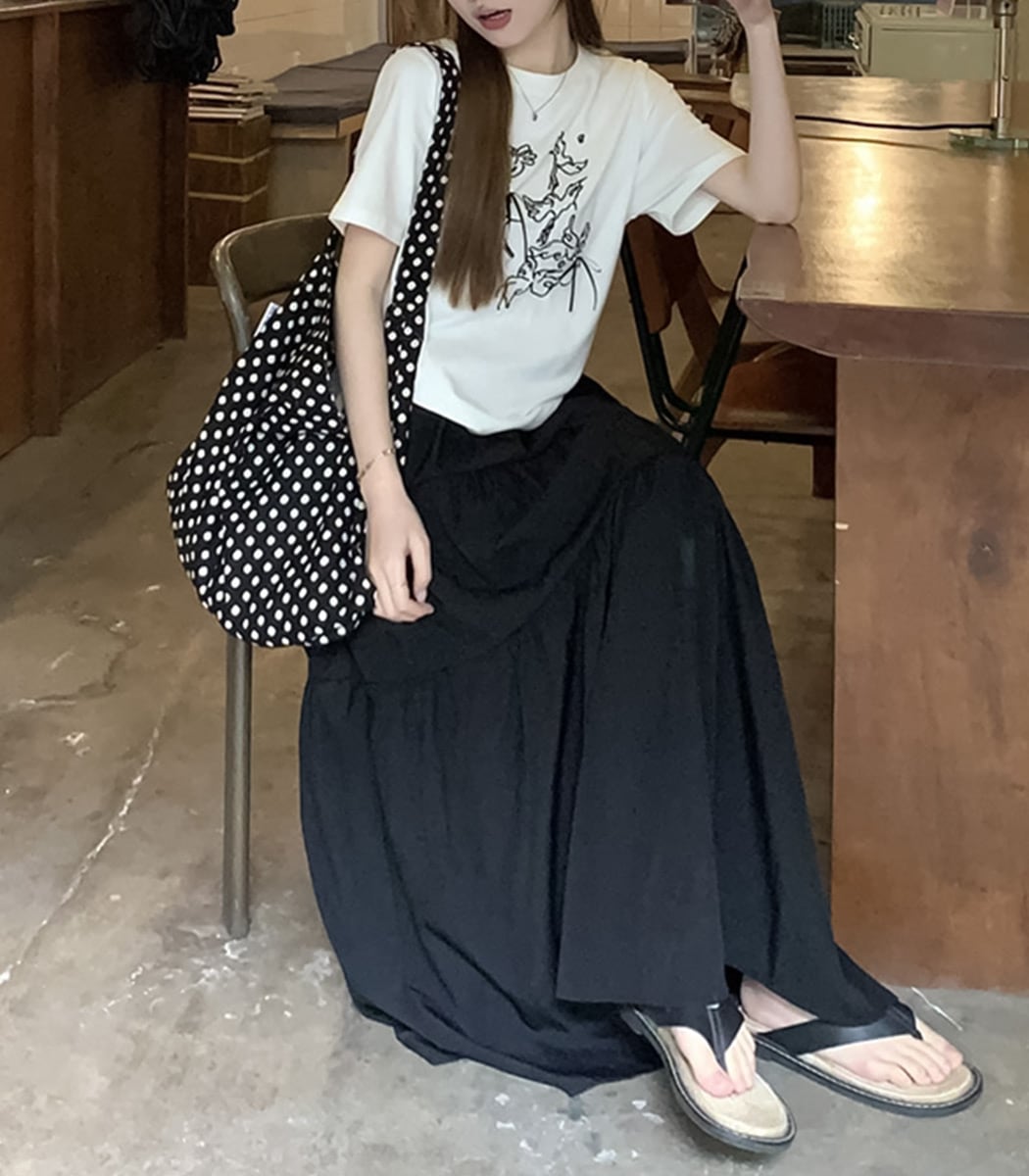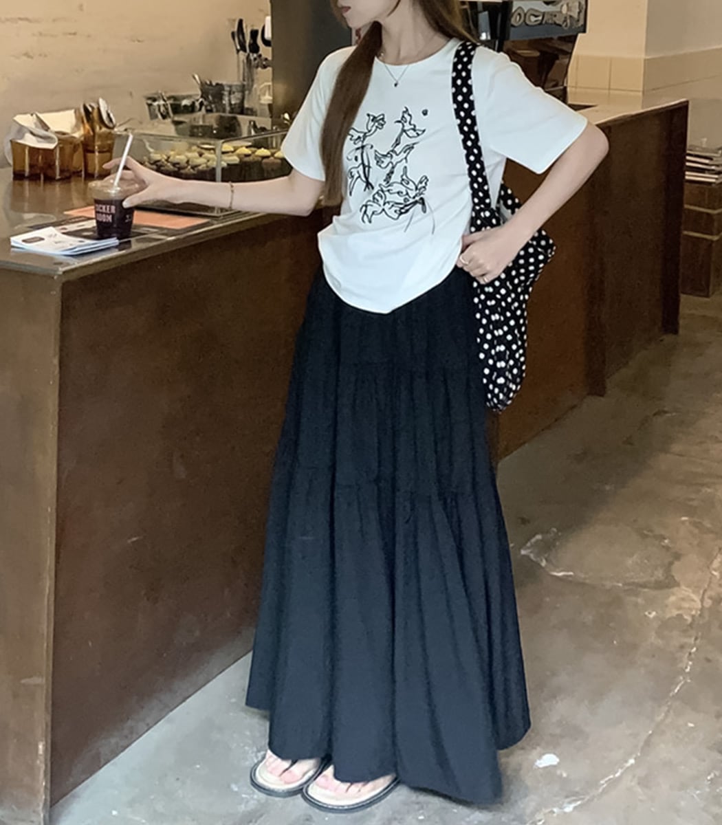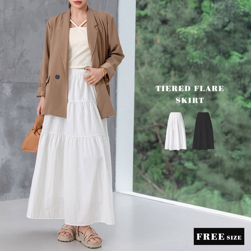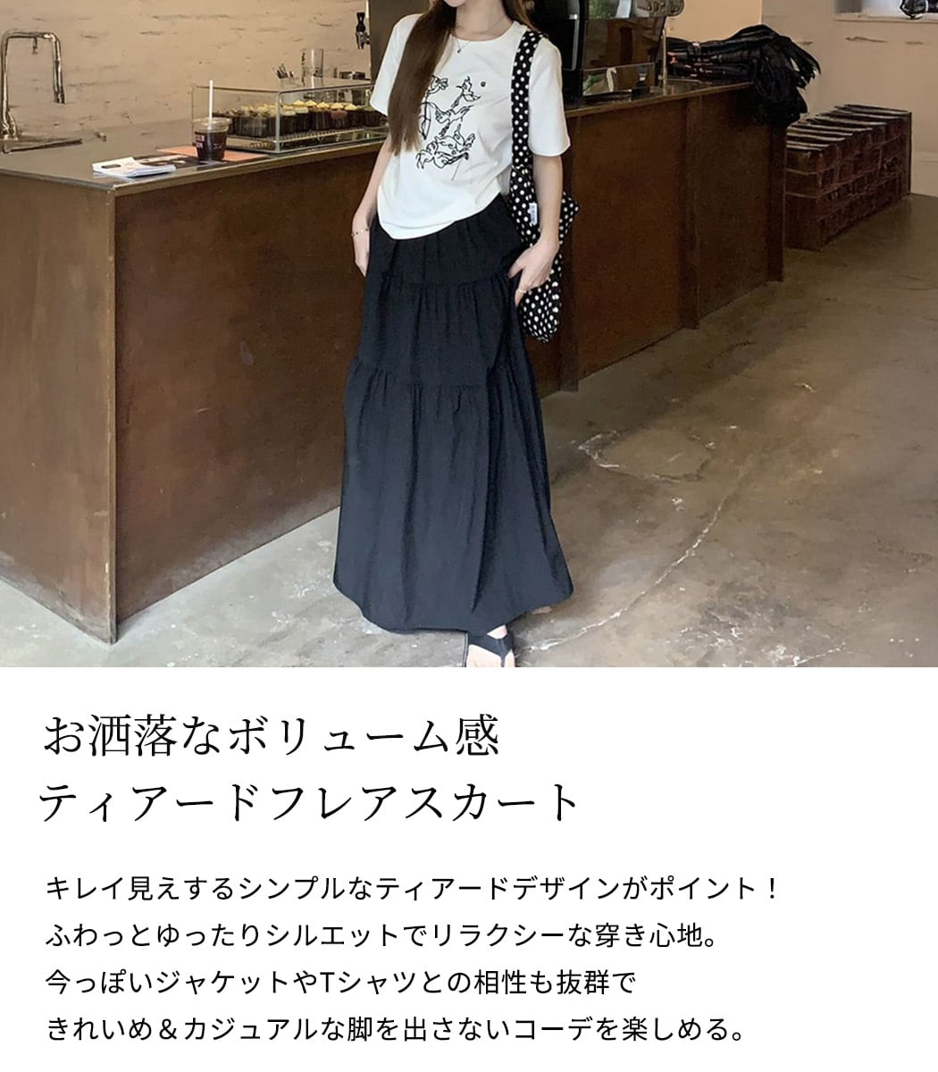 【メール便】「ティアードでボリューム増量」ティアード ロング スカート フレア ボトムス/skirt064