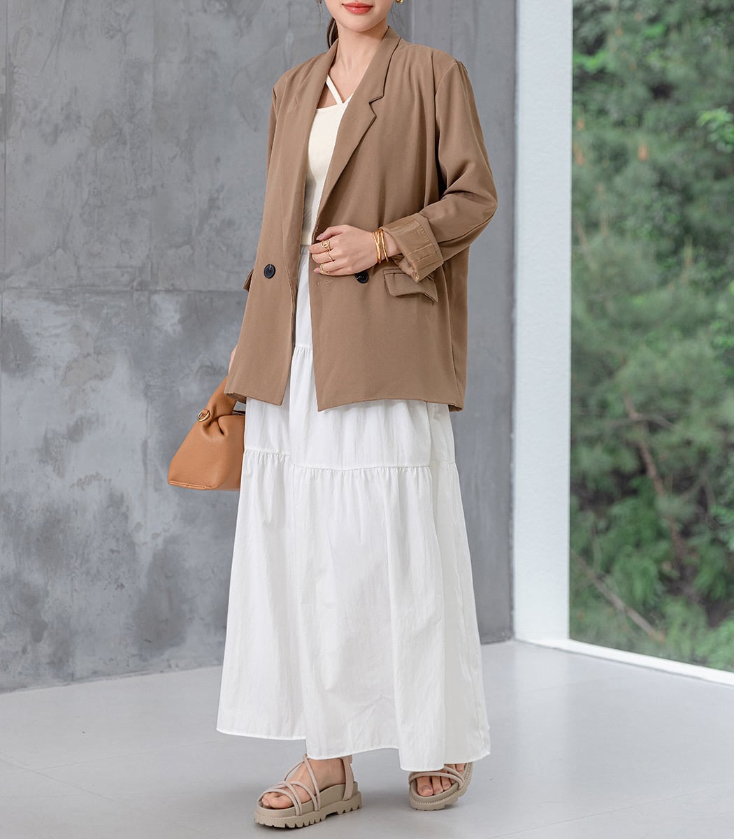 きれいめ&カジュアルな脚を出さないコーデを楽しめる。