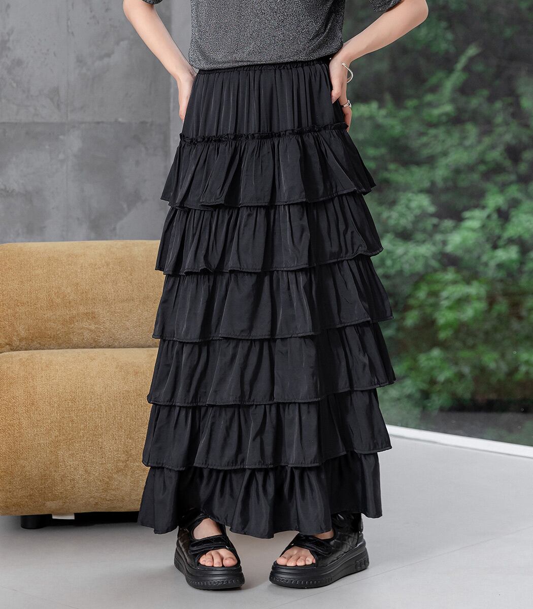 【メール便】「たっぷり華やかフリル」ティアードスカート ロング レディース フリル きれいめ/skirt066