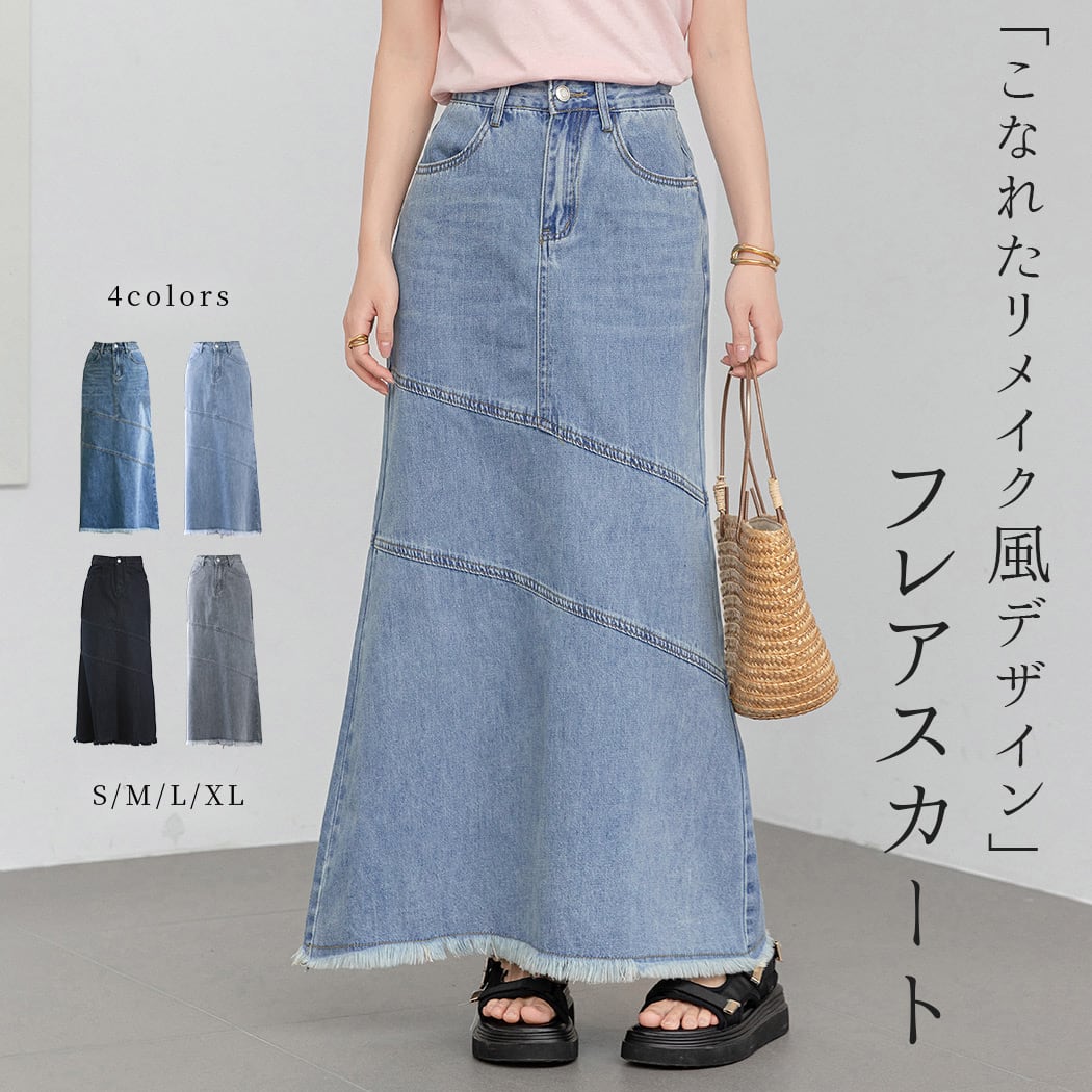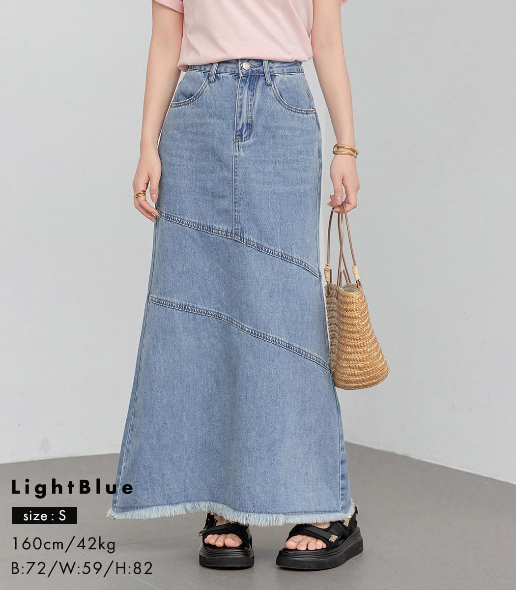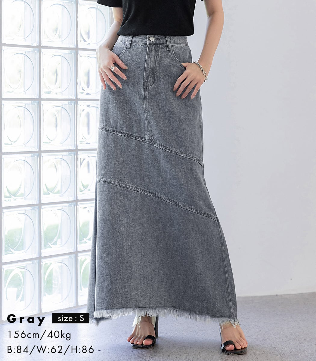 【メール便】「こなれた斜め切り替え」デニム スカート 大人 ロング Aライン/skirt067