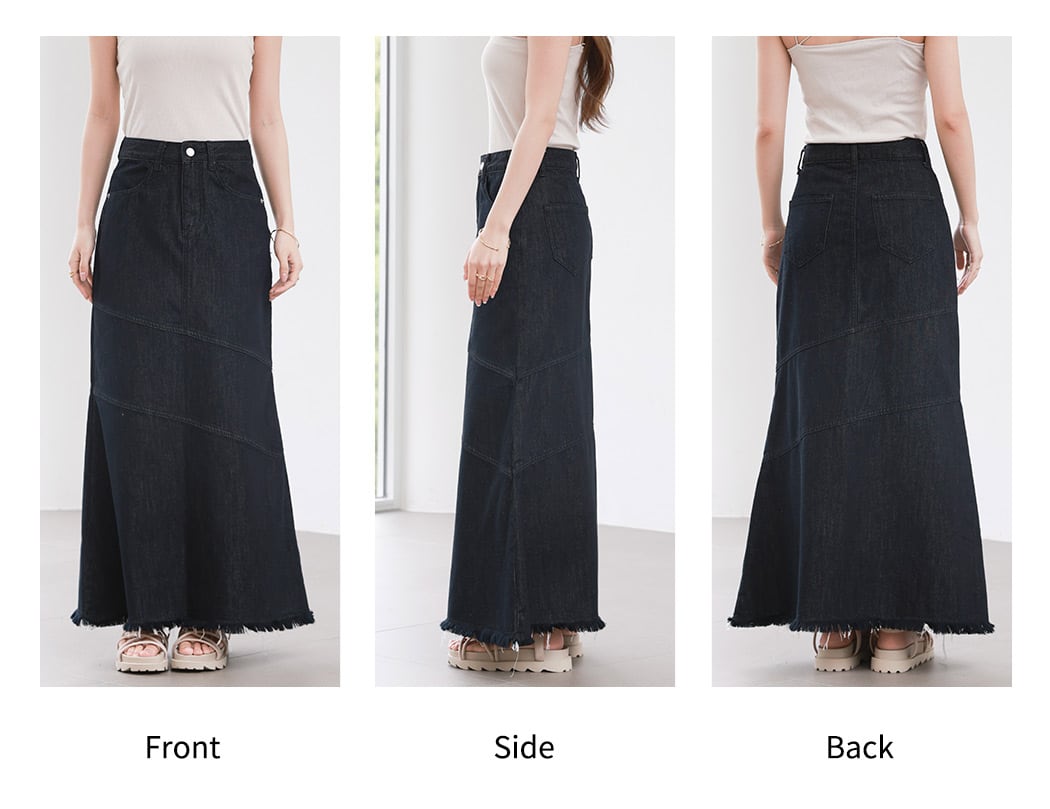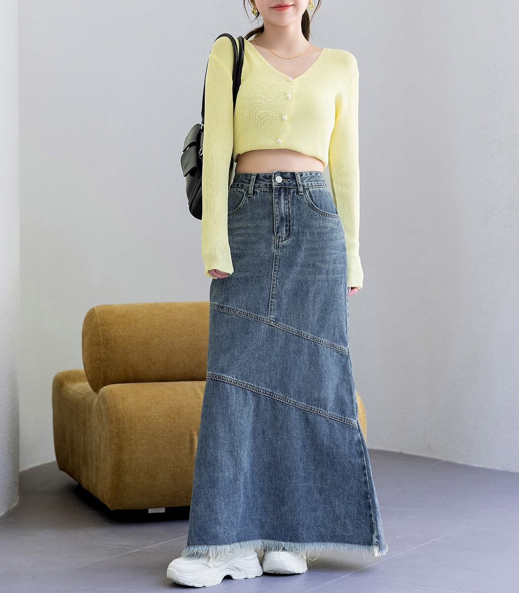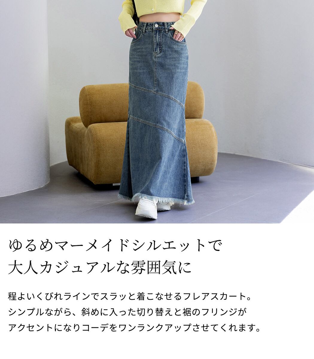 【メール便】「こなれた斜め切り替え」デニム スカート 大人 ロング Aライン/skirt067