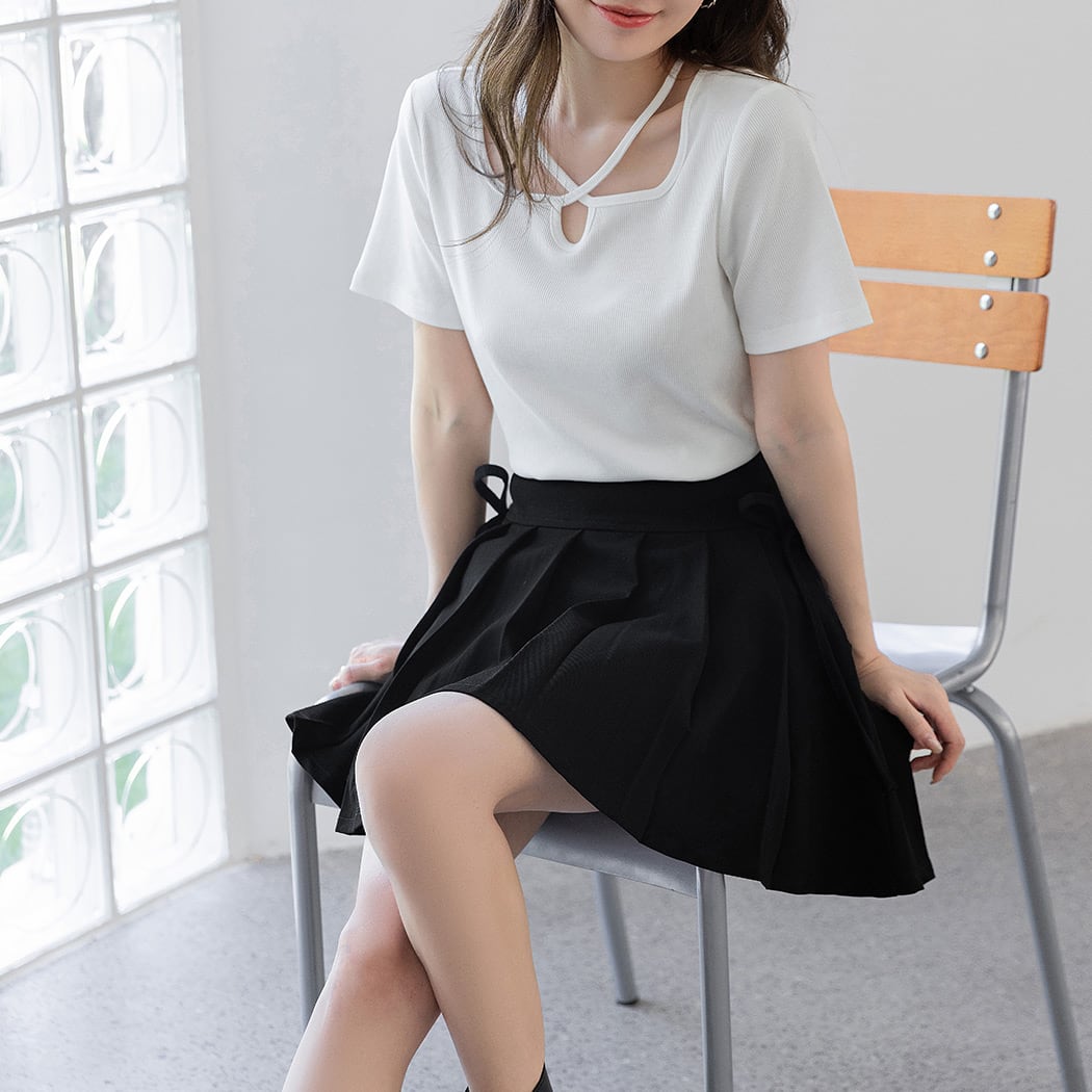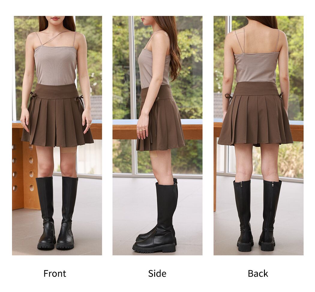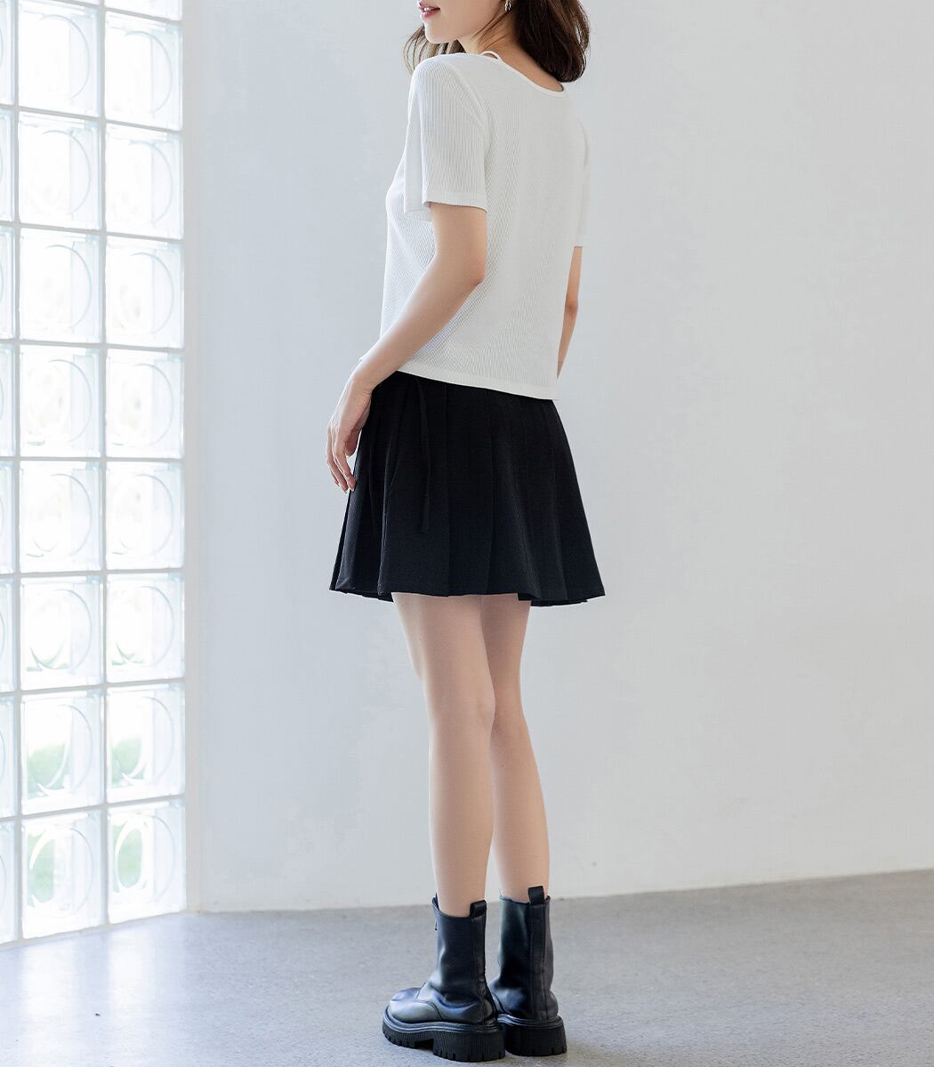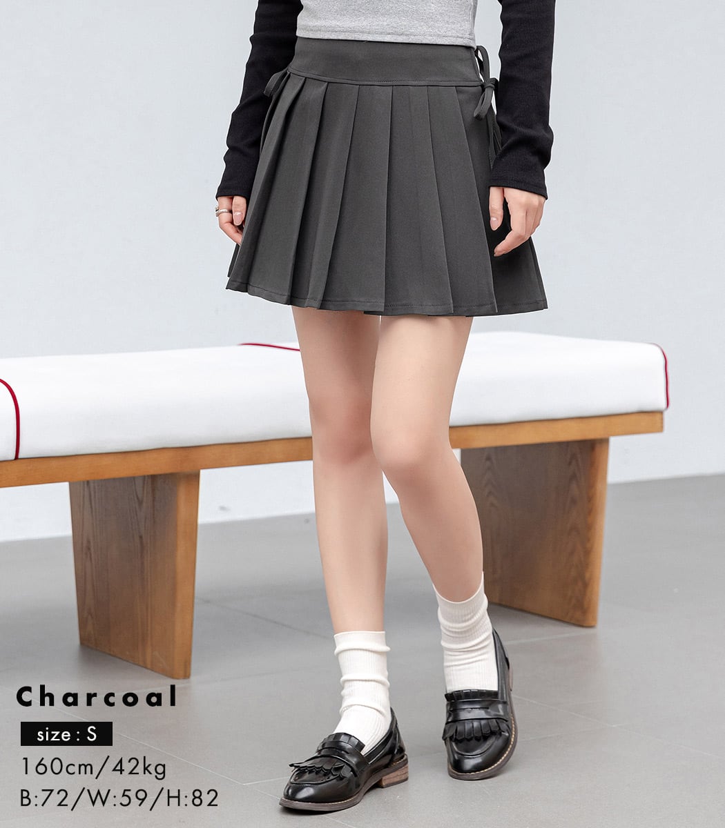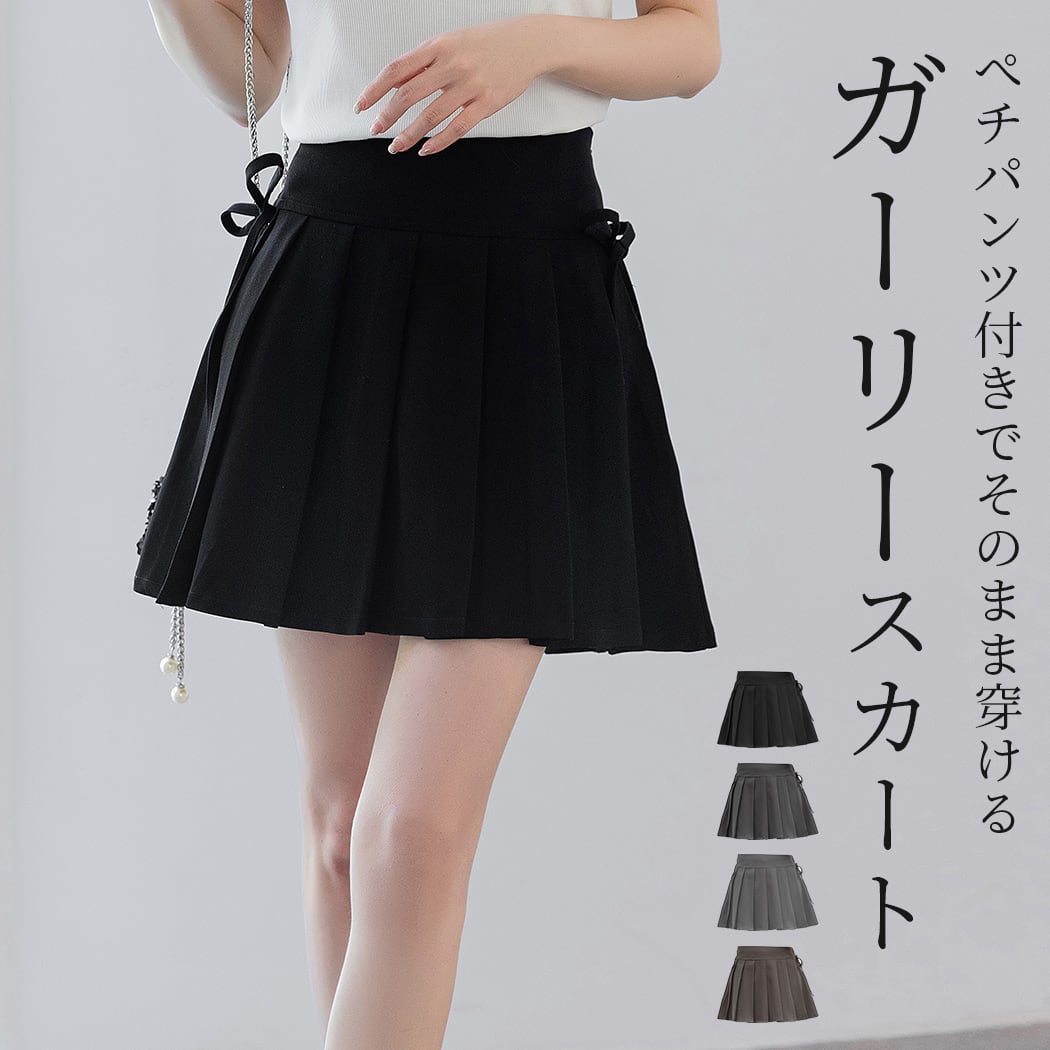 【メール便】「細リボンでアクセントを」プリーツスカート ミニ ボトムス レディース ミニスカ/skirt068