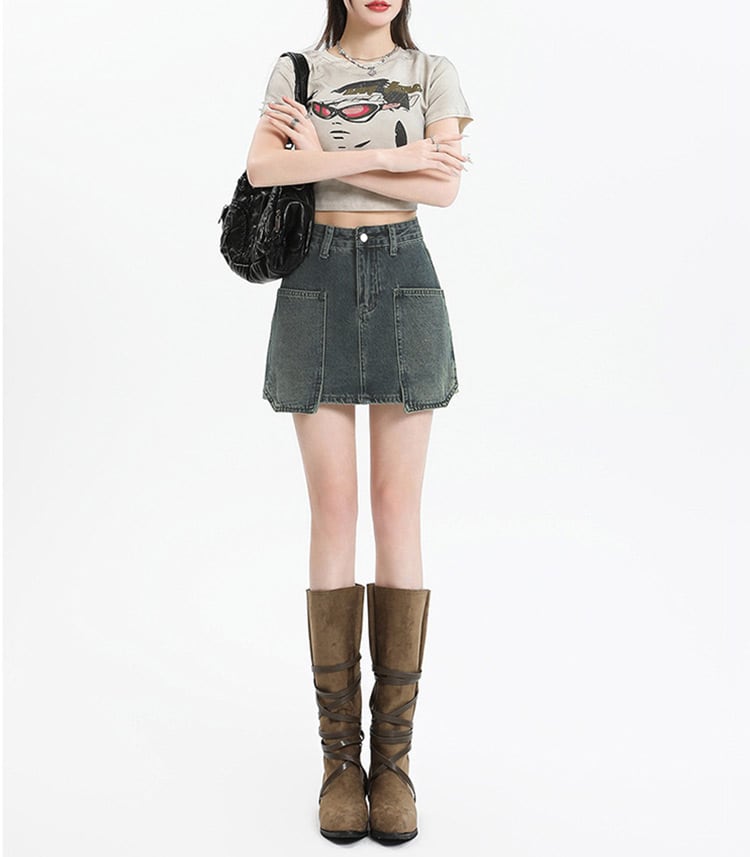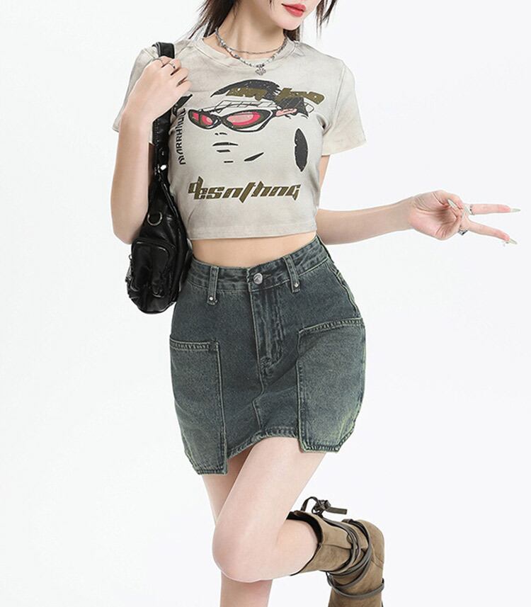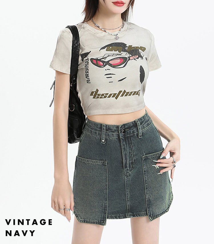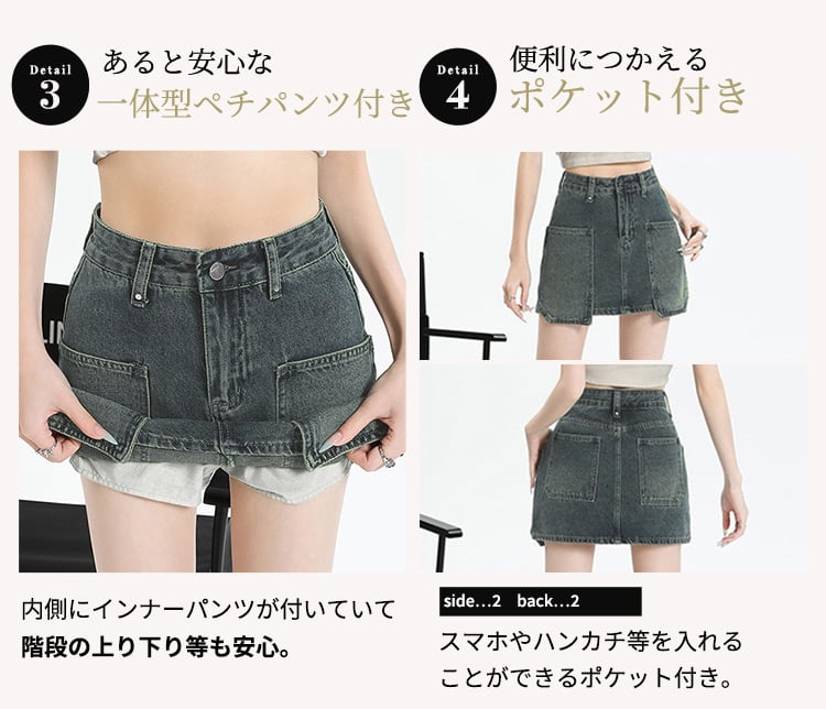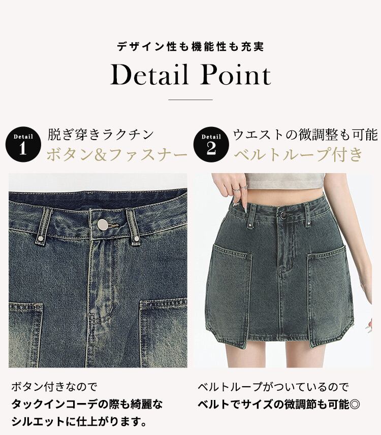 【メール便】「インパクト◎大き目ポケット」デニム ミニスカート 韓国ファッション デニムスカート ミニ/skirt070