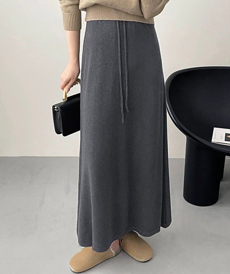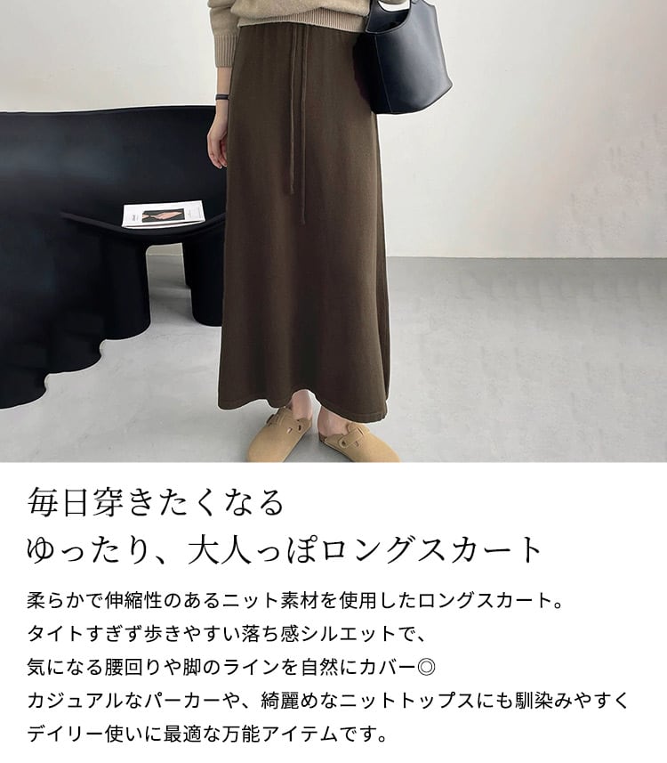 柔らかで伸縮性のあるニット素材を使用したロングスカート。