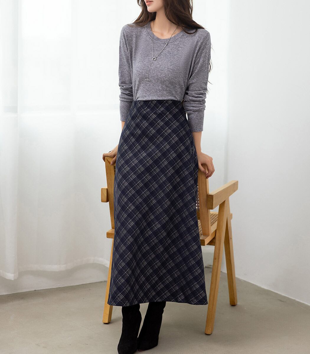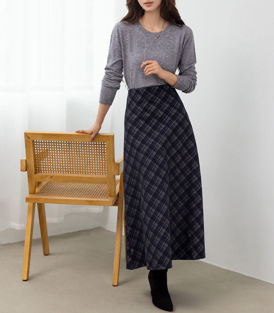 【メール便】「優雅に染まるチェック」ロング マキシ ストレート スカート レディース/skirt087