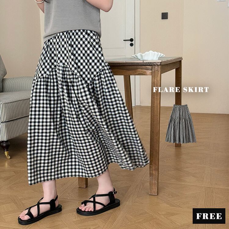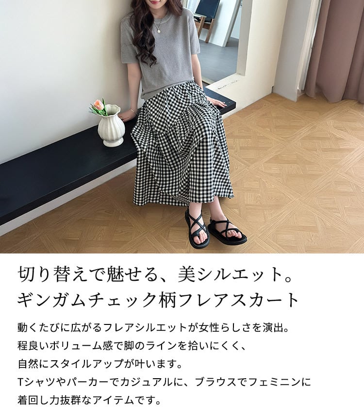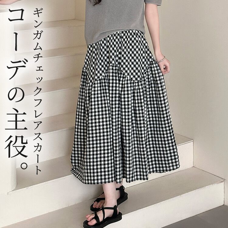 ギンガムチェックフレアスカート