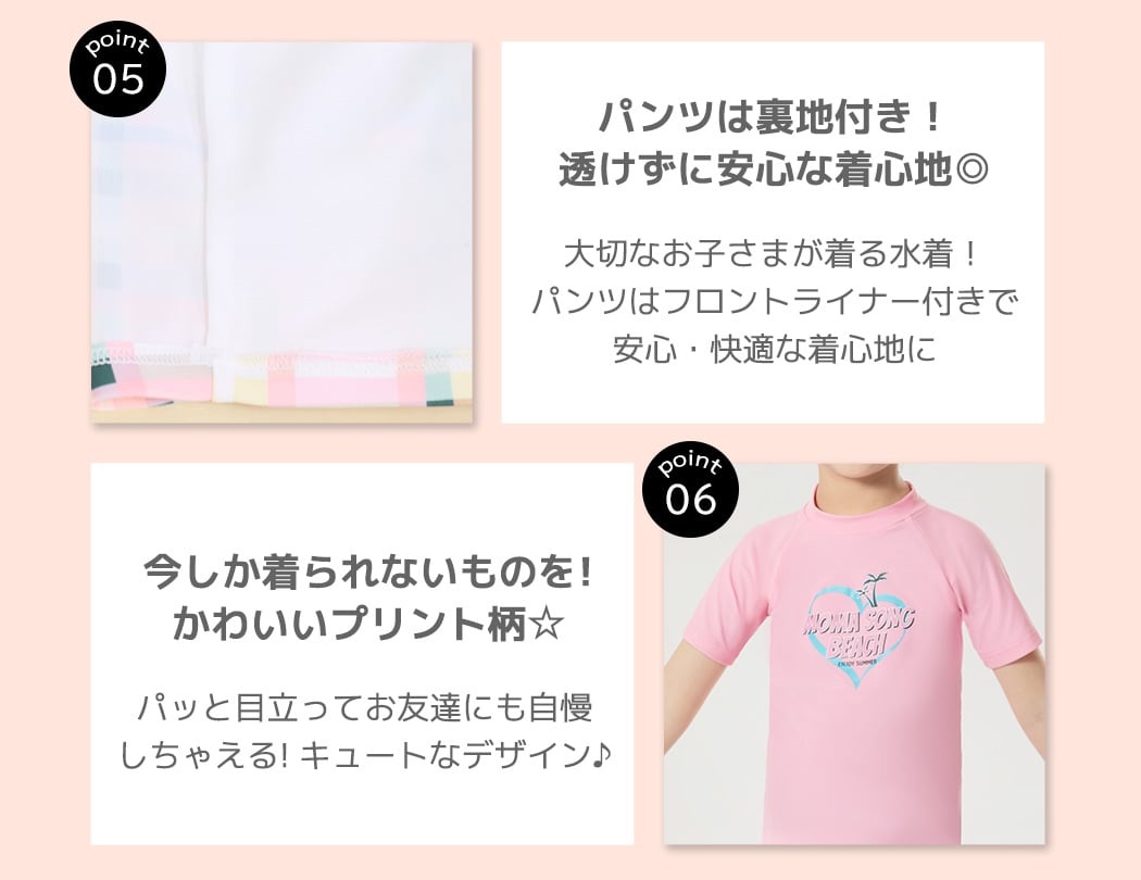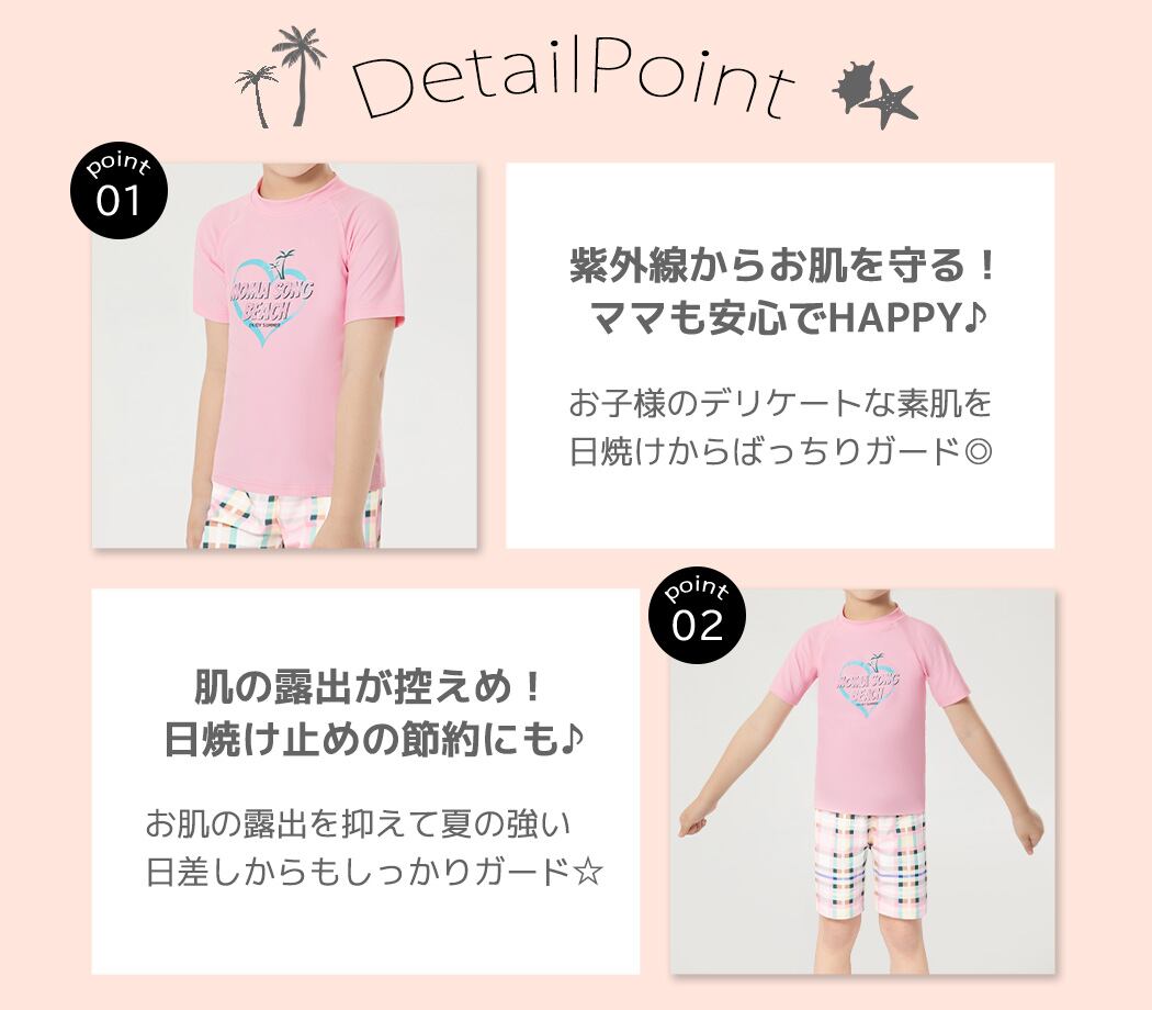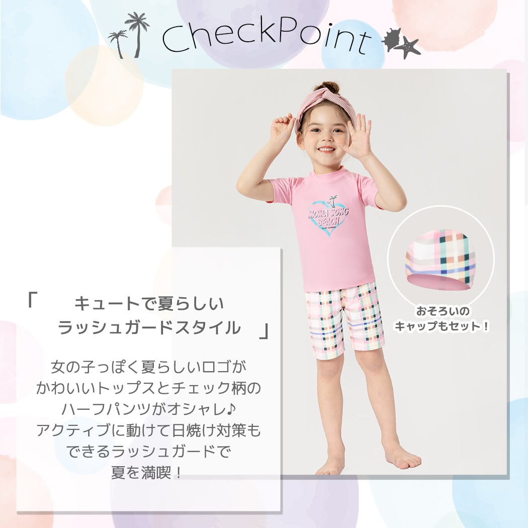 【メール便】キッズ 水着 女の子 半袖 ラッシュガード/kids462