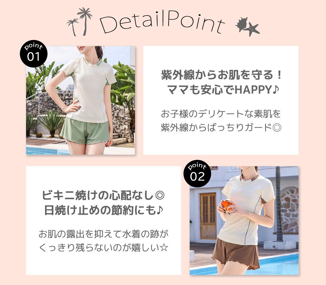 お肌の露出を抑えて水着の跡が