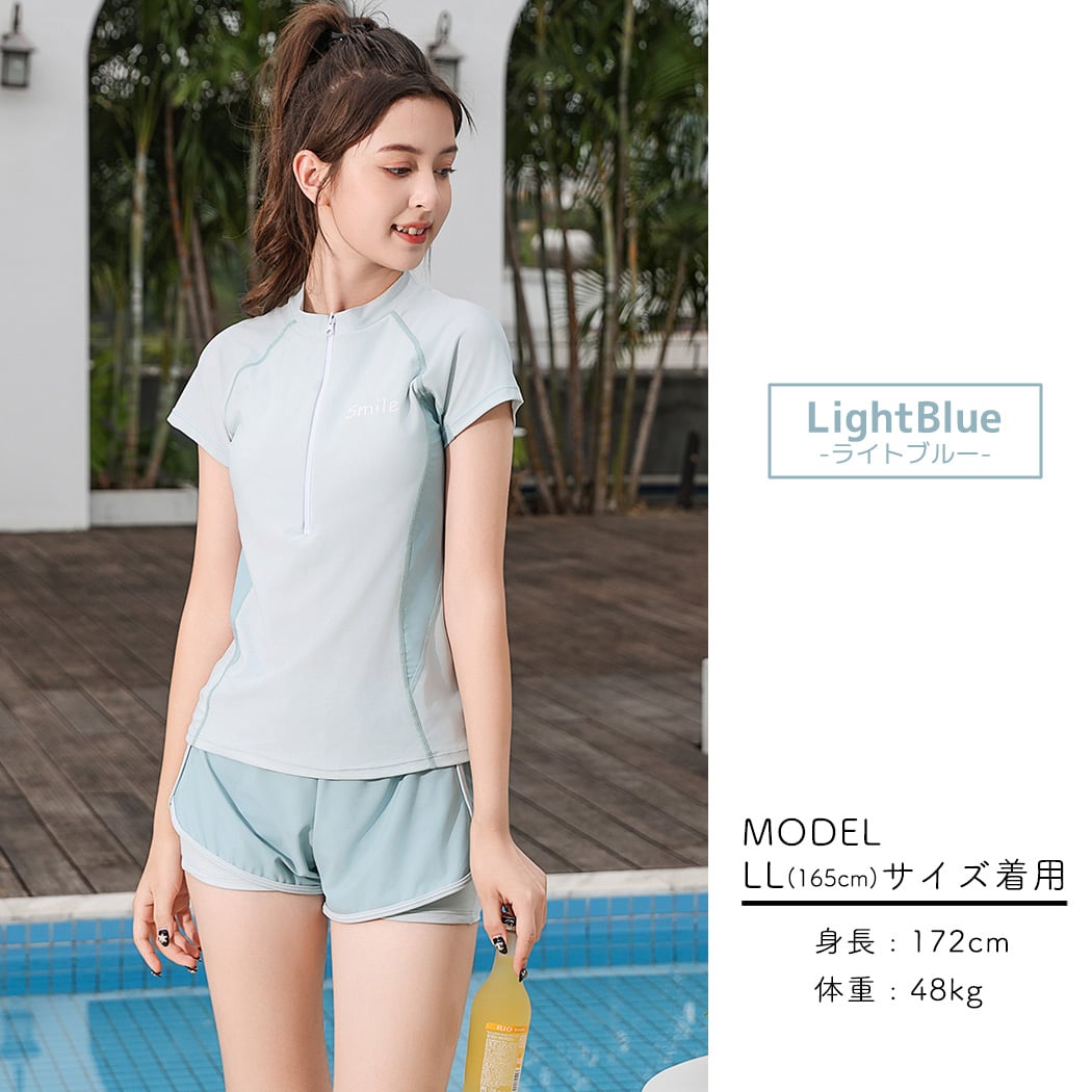 ボーイレッグとの二重構造で露出控えめ◎