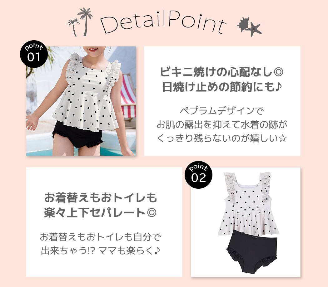 「ドット柄が可愛い2点セットキッズ水着」