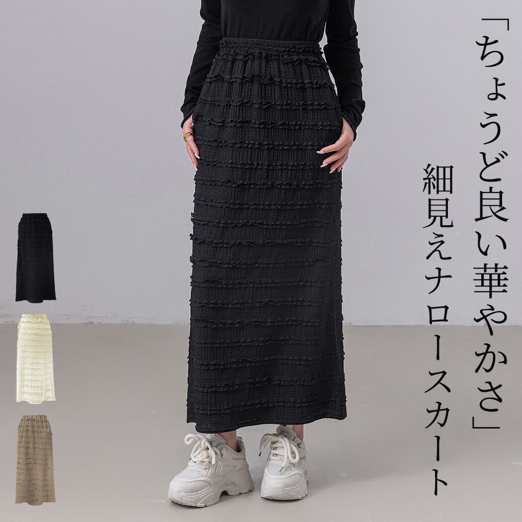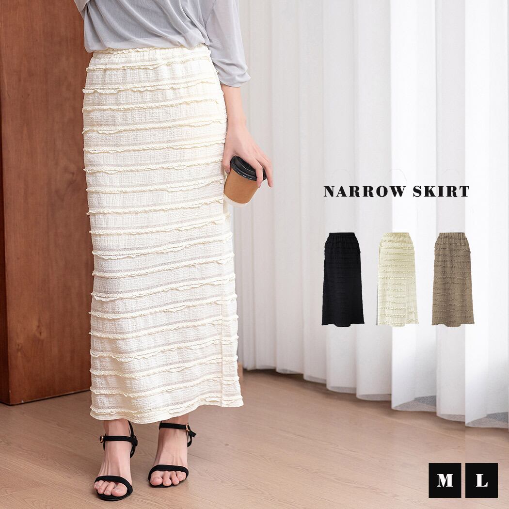 【メール便】「華やかに細見え」ナロースカート ロング レディース Iライン きれいめ フリル/skirt052