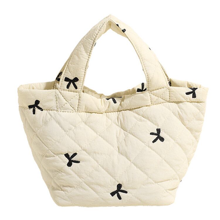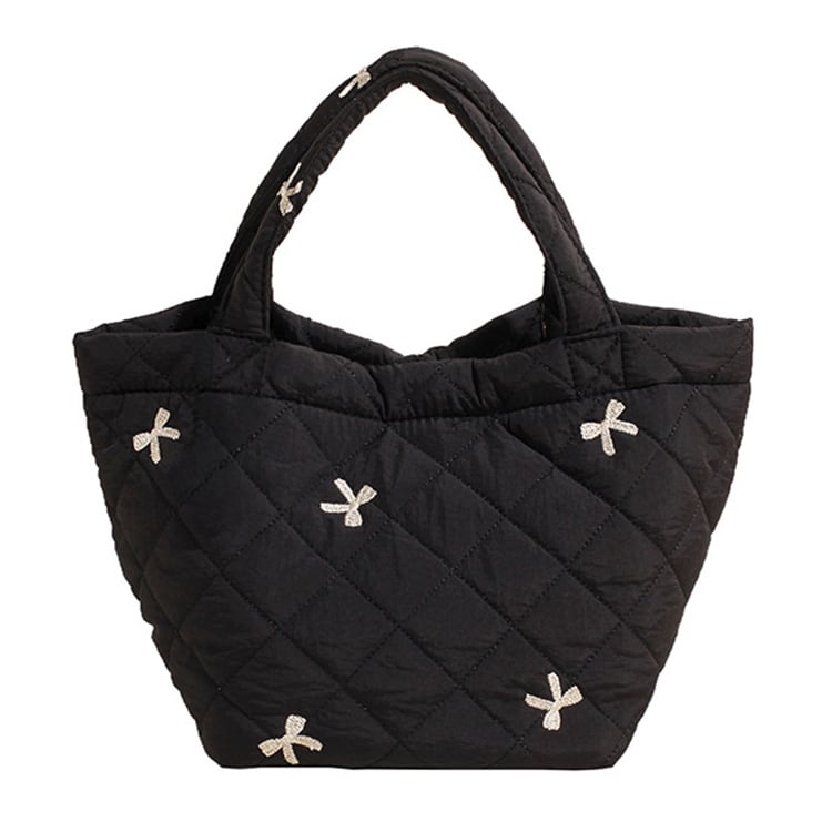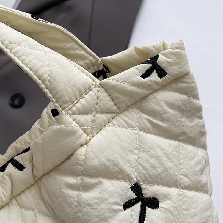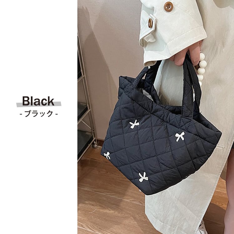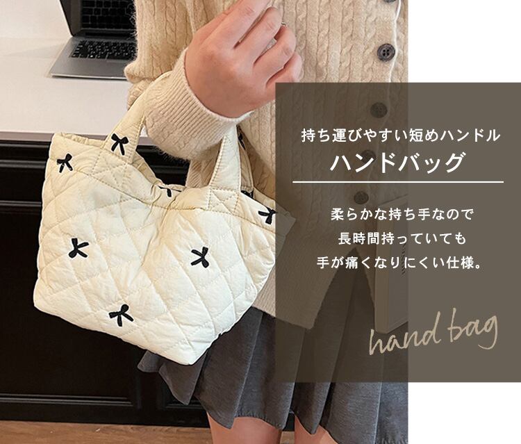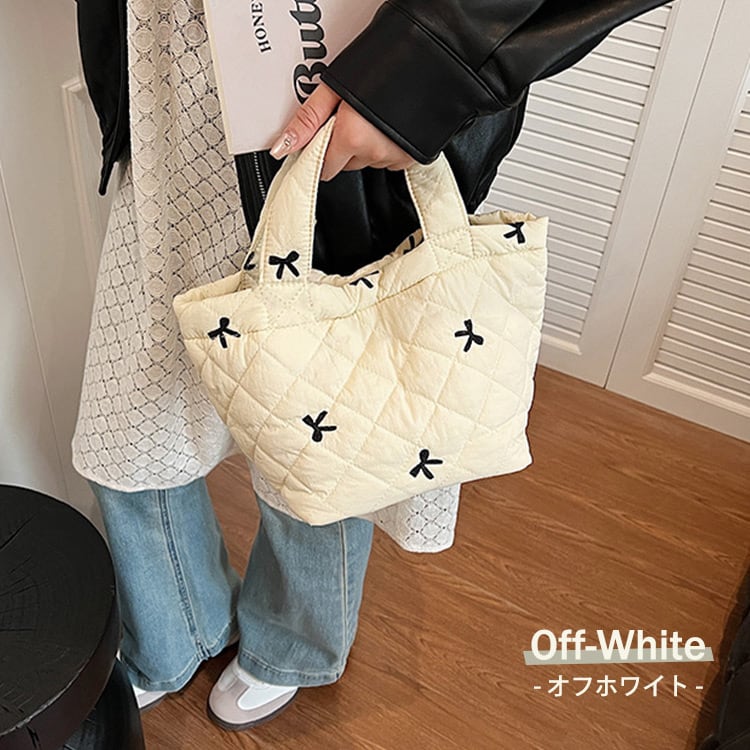 リボン柄の刺繍が散りばめられた大人可愛いトートバッグ。