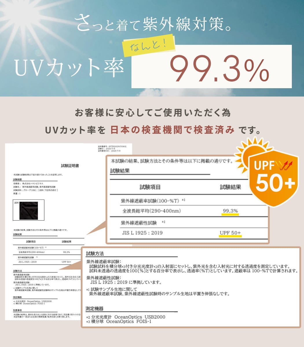 UVカット率(紫外線遮蔽率)なんと!「99.3%」「UPF50+」