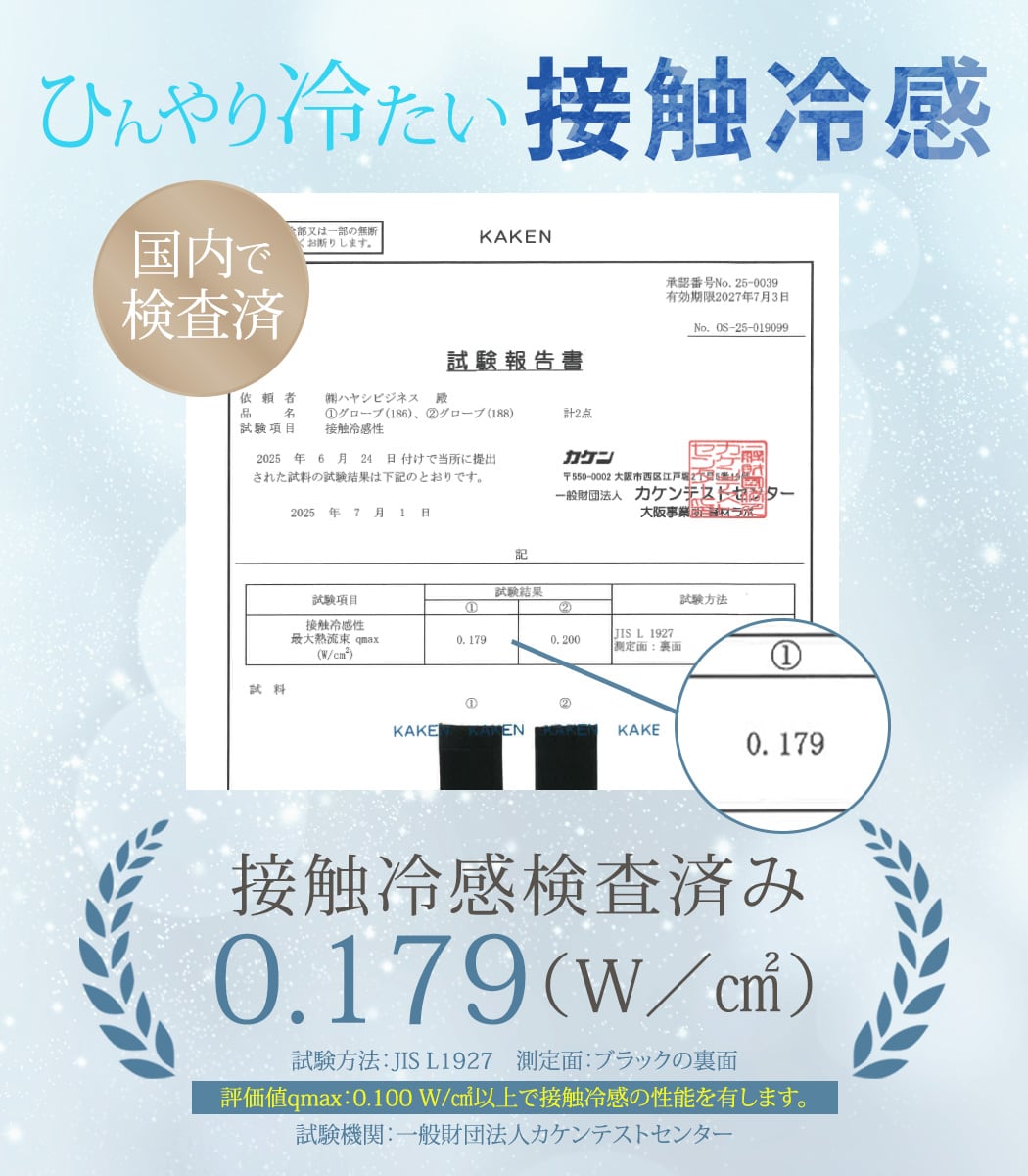 ※評価値qmax:0.100 W/cm?以上で接触冷感の性能を有します。