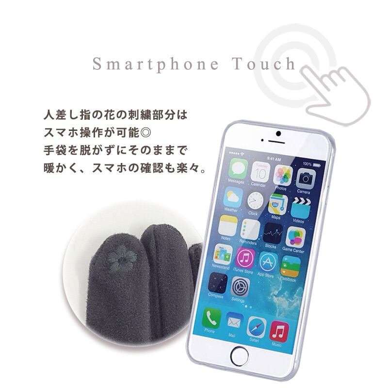 人差し指の花の刺繍部分はスマホ操作が可能◎