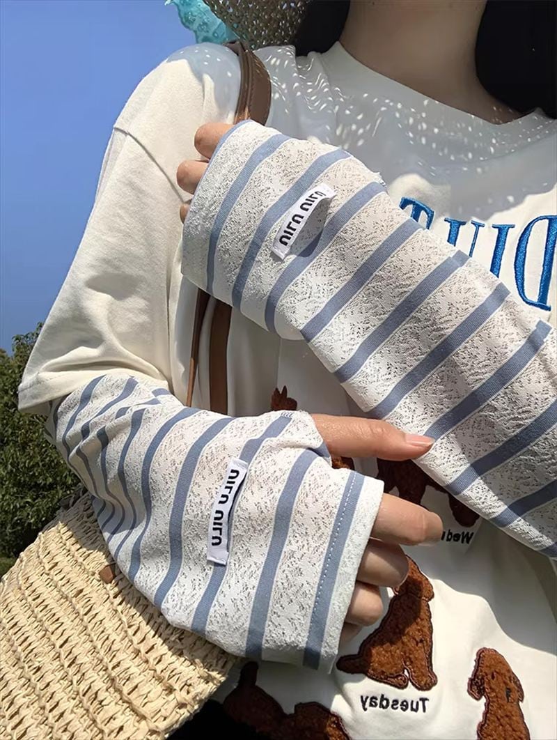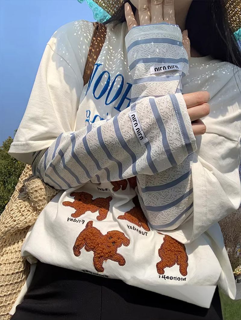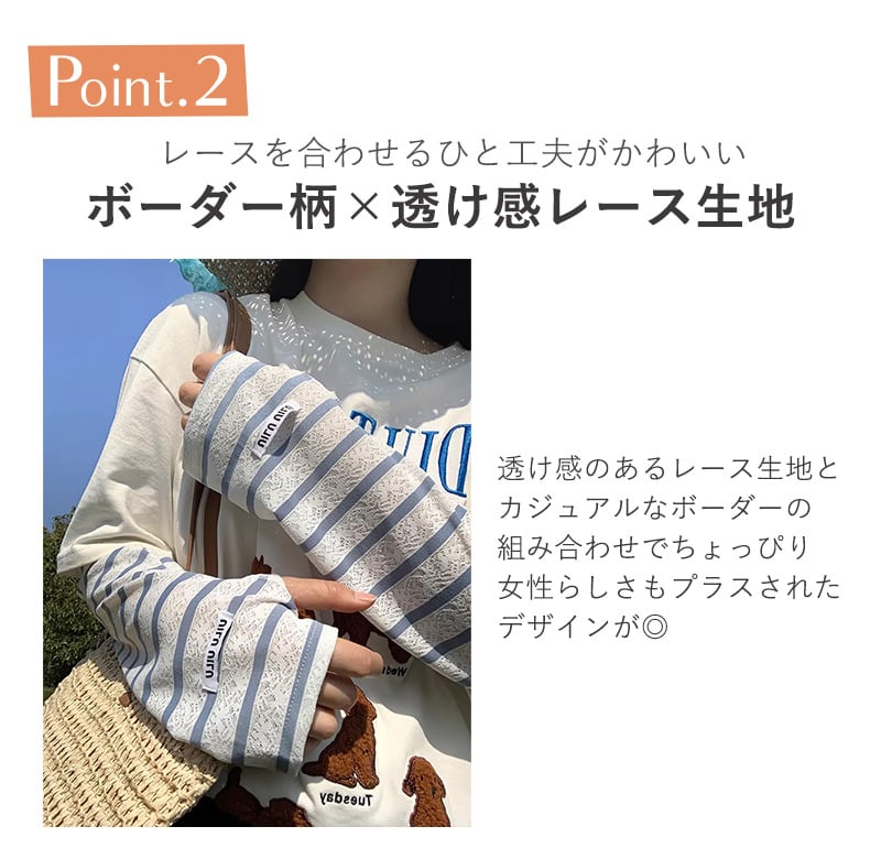 【メール便】 アームカバー レース ボーダー ロング/glove197