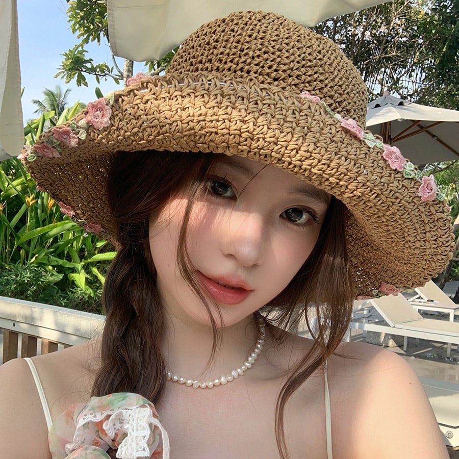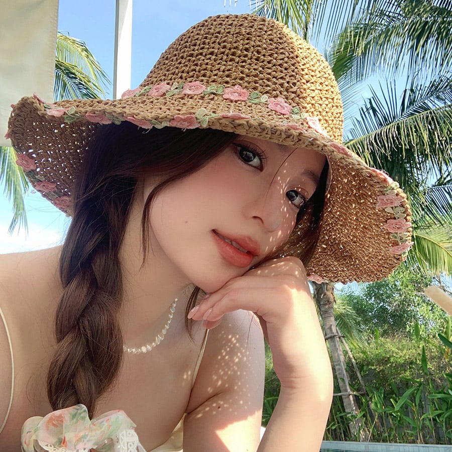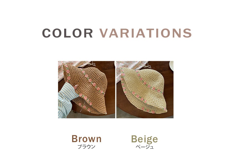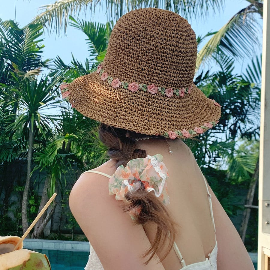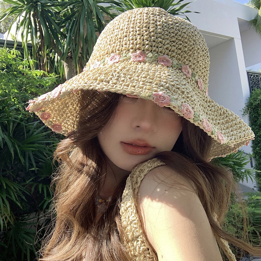 花刺繍付き麦わら帽子
