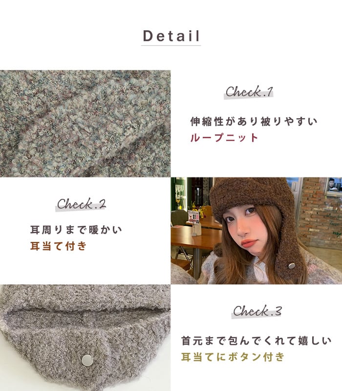 首元まで包んでくれて嬉しい耳当てにボタン付き